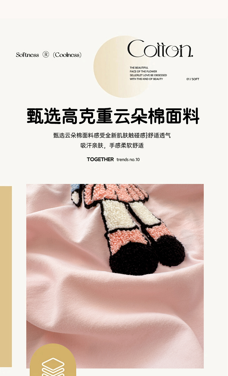 商品名称:(总)一霖家纺 2026新款云朵棉毛巾绣小清新猫咪系列四件套