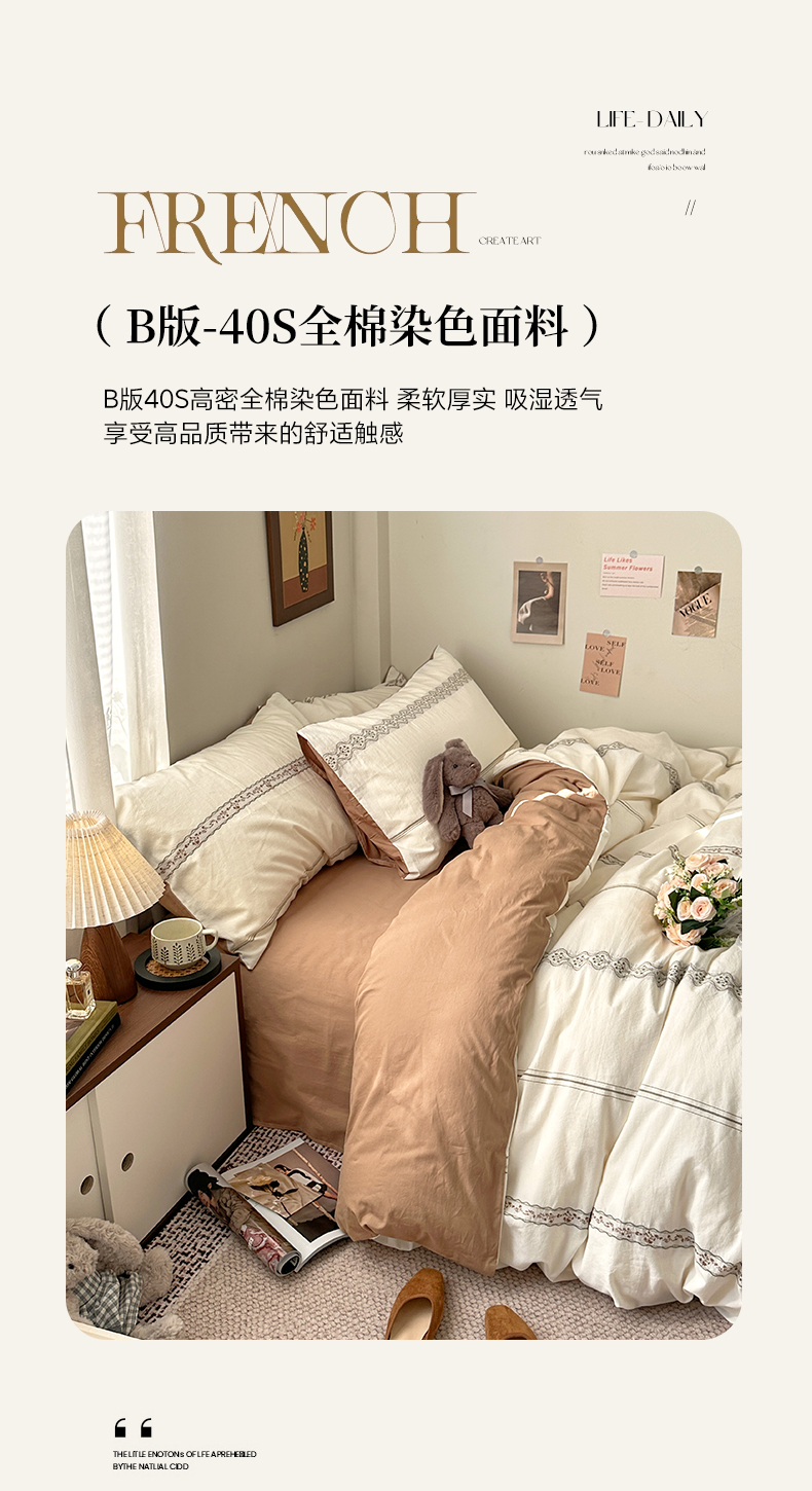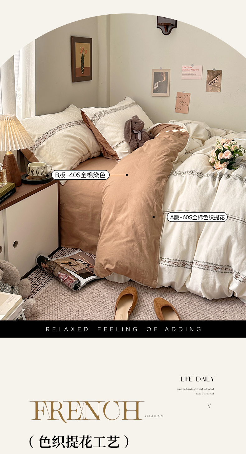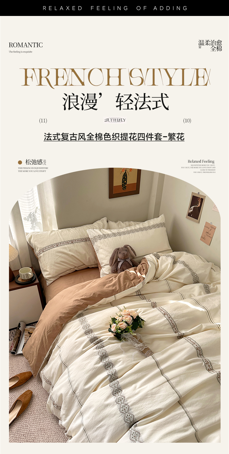 当前位置: 91家纺网 > 商品网购 > 床品套件 > 四件套 > 全棉普通四件套 > 艾咪-Amy ntmy 2026新款法式复古风全棉纯棉色织提花四件套-繁花 繁花咖