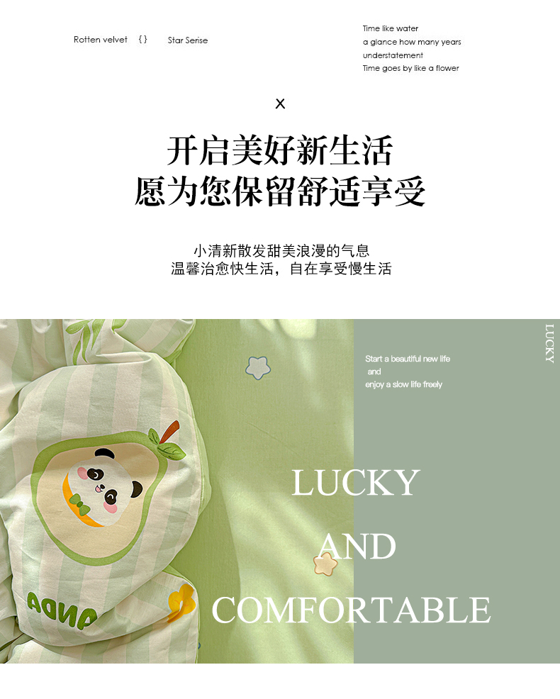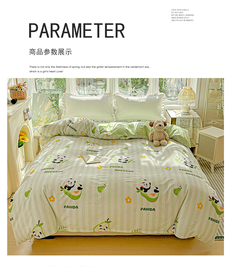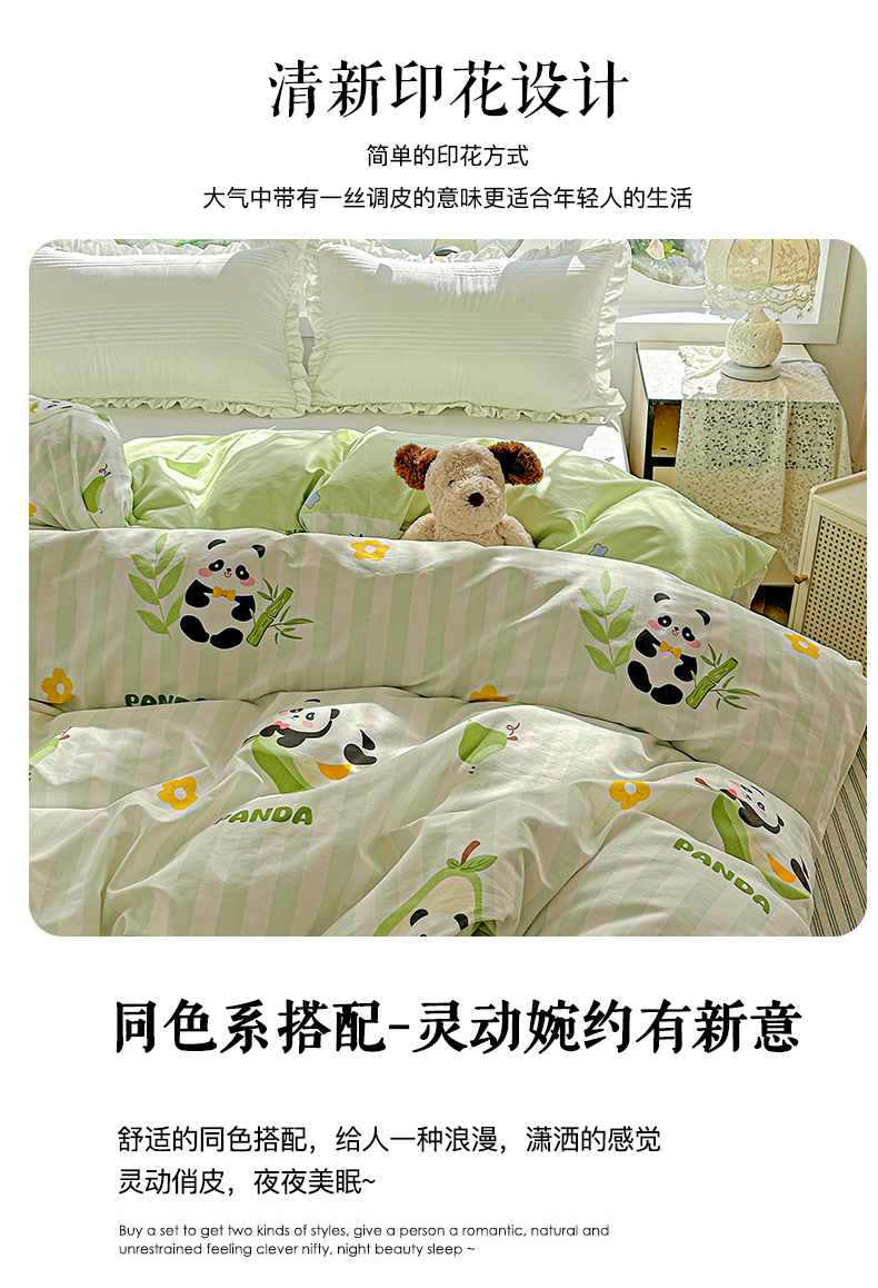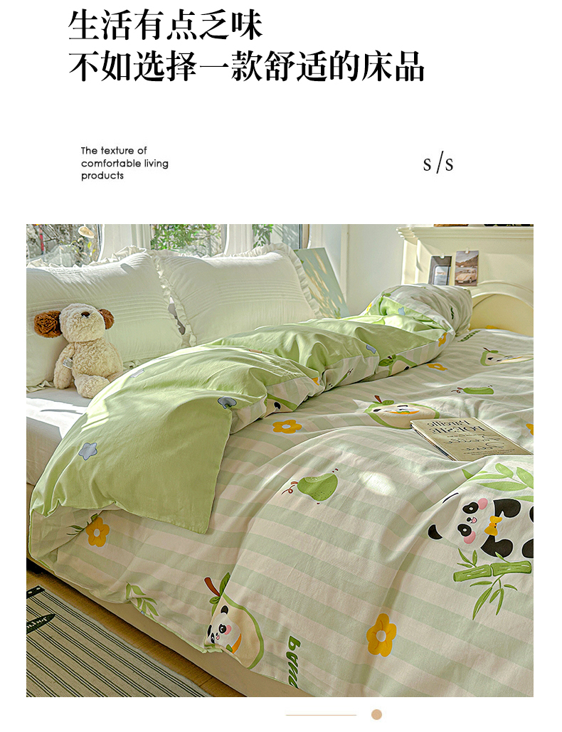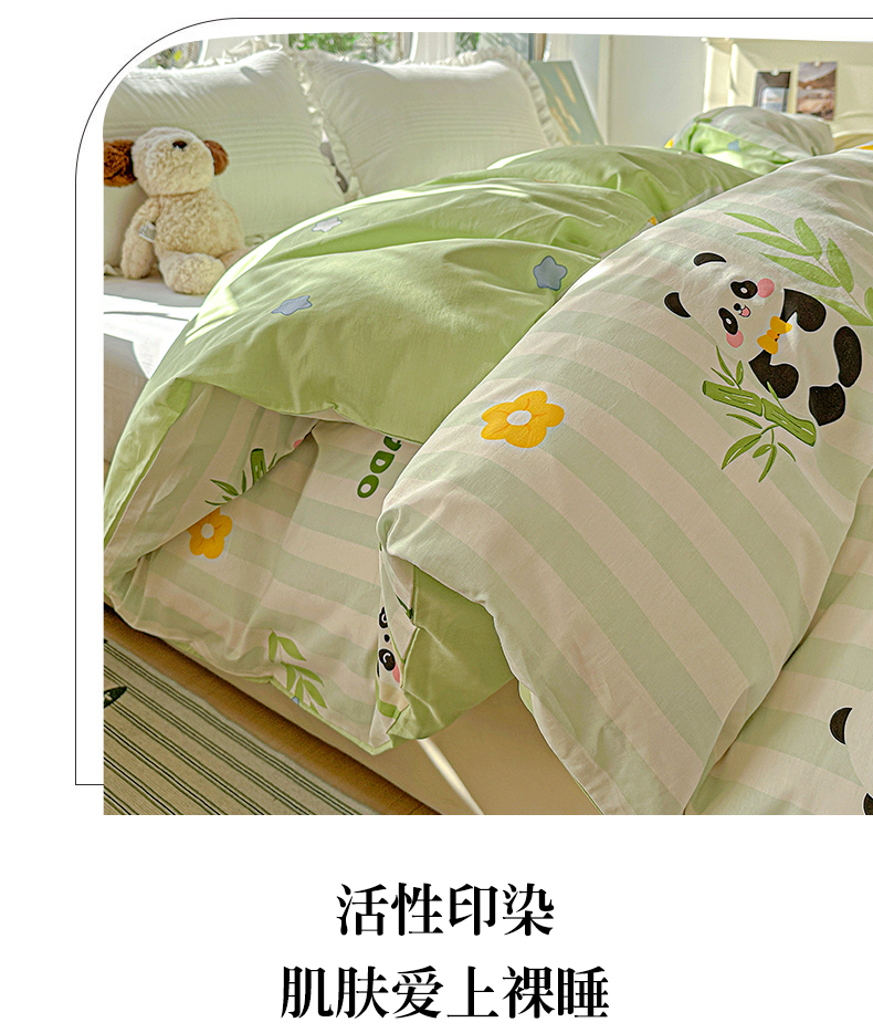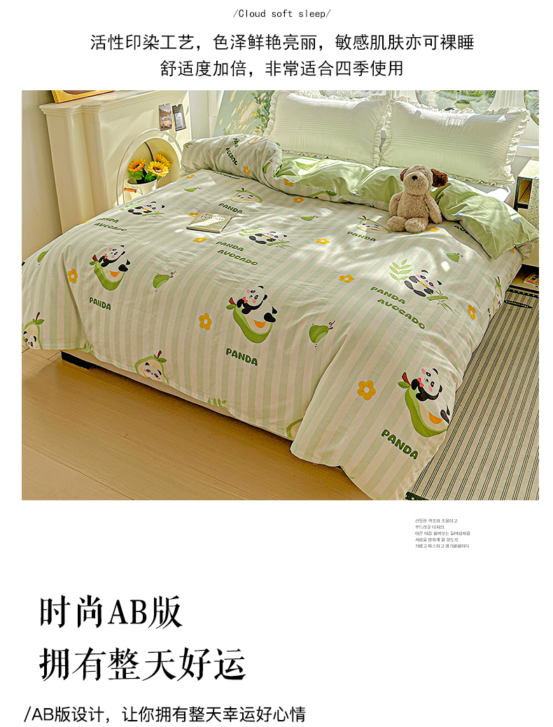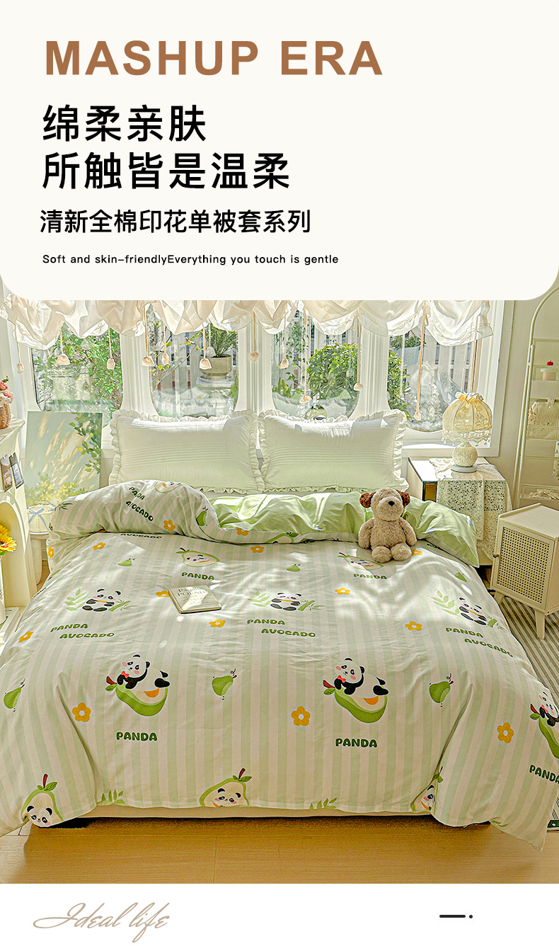 恩泽家纺 2026春夏新款全棉12868印花四件套单品系列-单被套-提供买家秀,预留缩水率 熊猫与牛油果