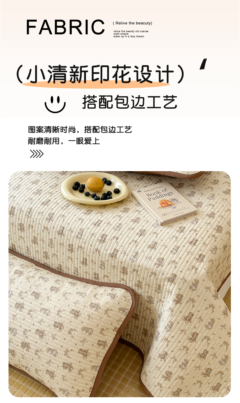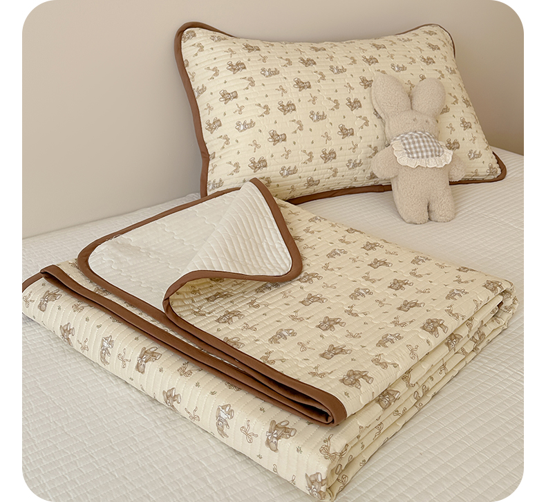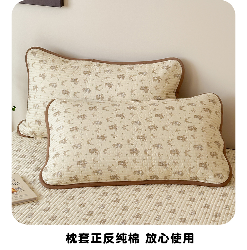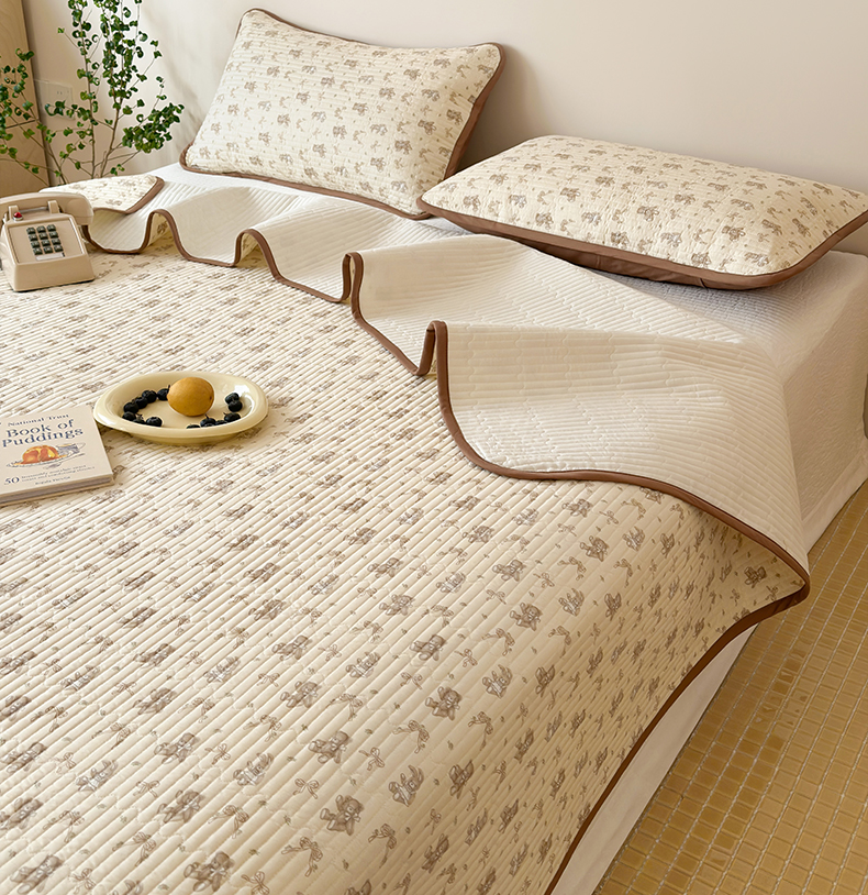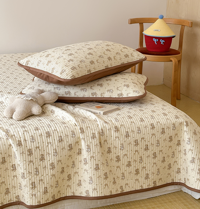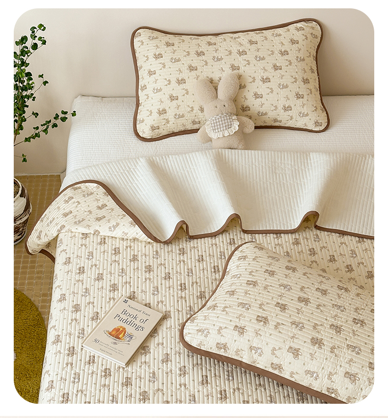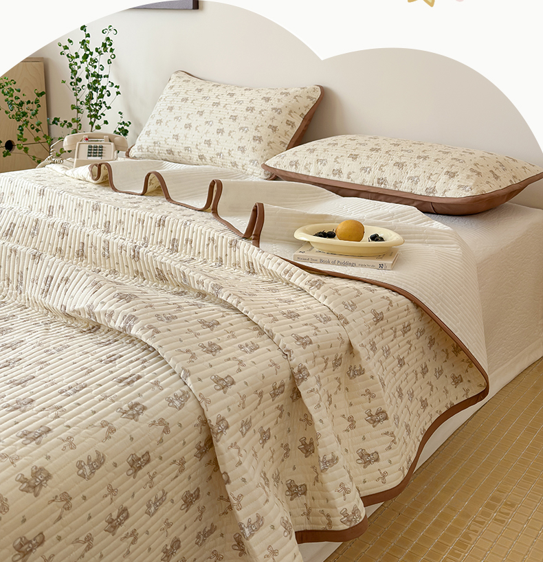 • 91家纺网 家纺一手货源 找家纺 漫时光 2026新款纯棉小清新棉花夹层床盖 杏萌熊