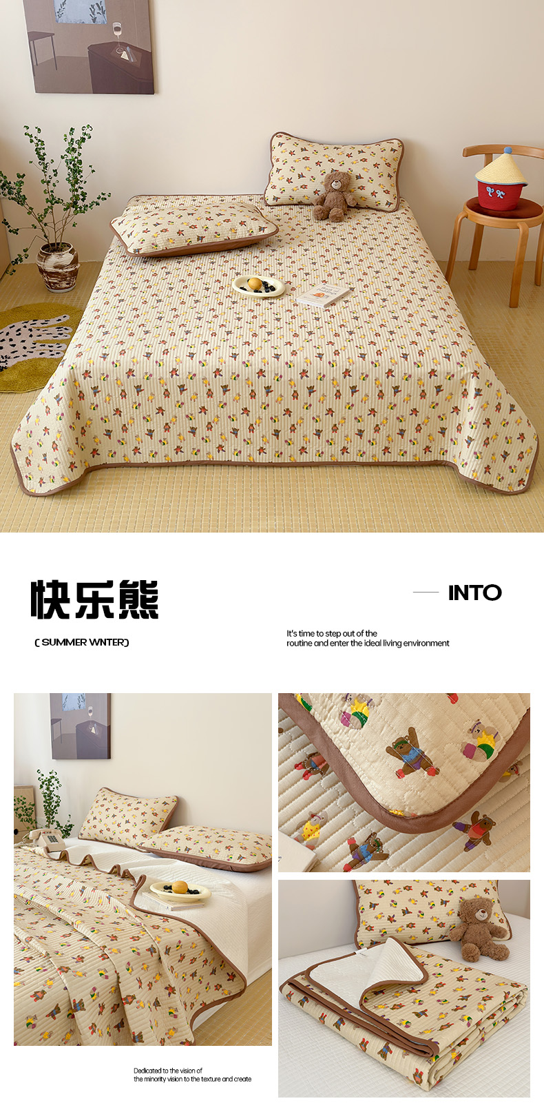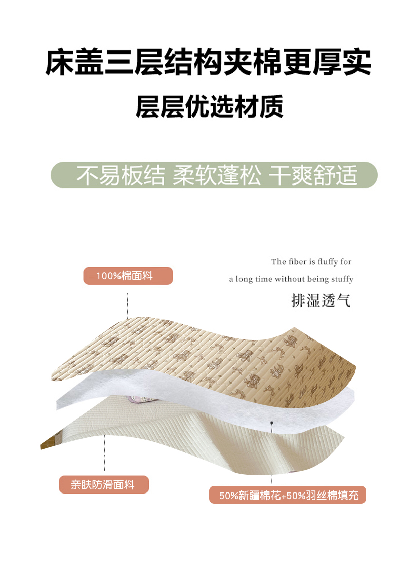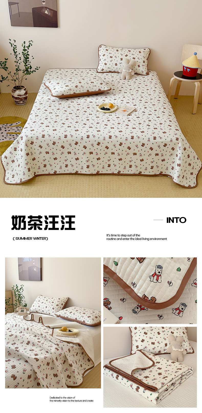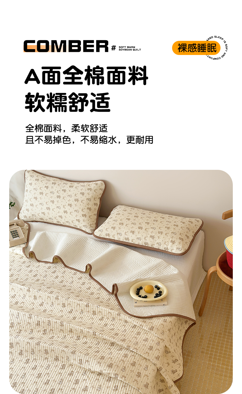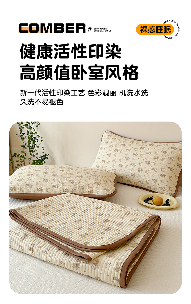 • 91家纺网 家纺一手货源 找家纺 漫时光 2026新款纯棉小清新棉花夹层床盖 杏萌熊