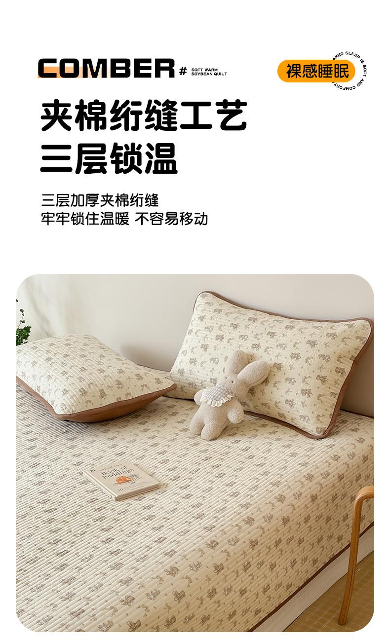 (总)漫时光 2025新款正面纯棉反面宝宝绒印花夹棉砂洗床盖三件套,班尼熊,风铃小兔,花间小兔,花园兔,开心屋,蕾丝小狗,猫咪派对,曲奇小狗,条纹熊,汪汪曲,小狗日记,小伙伴,小熊猫