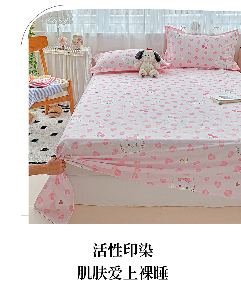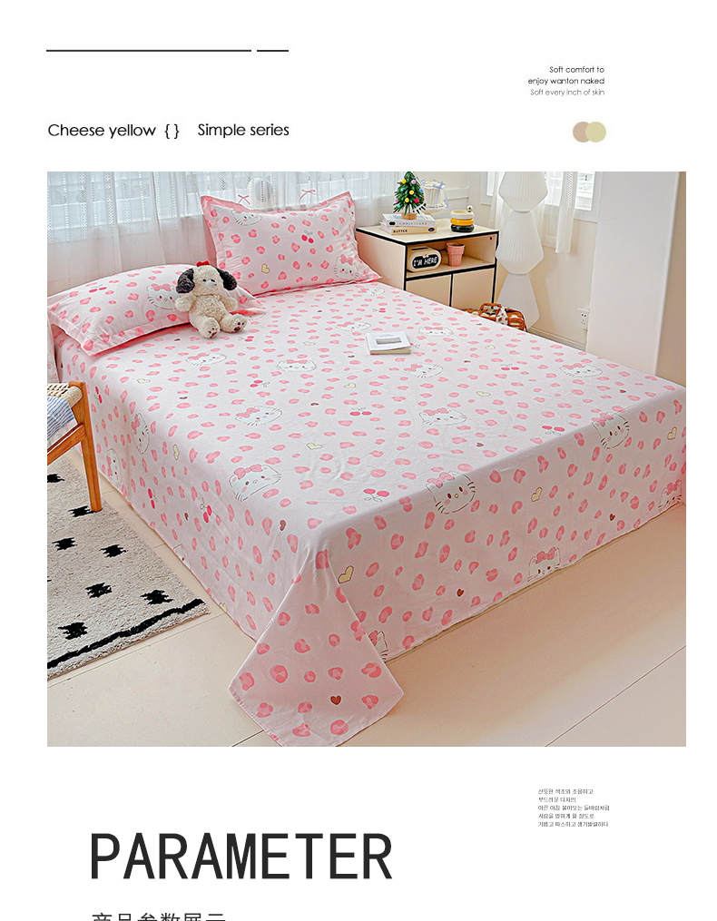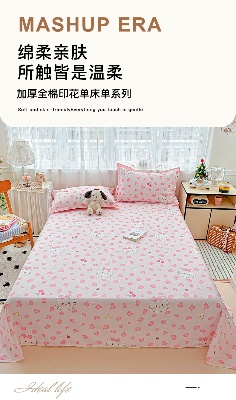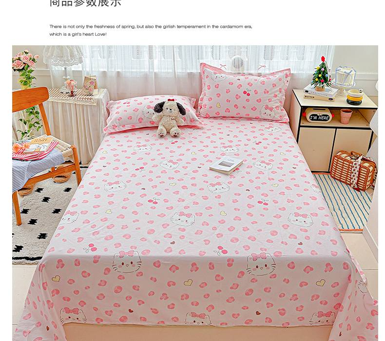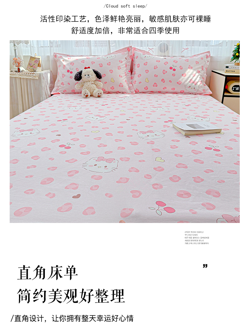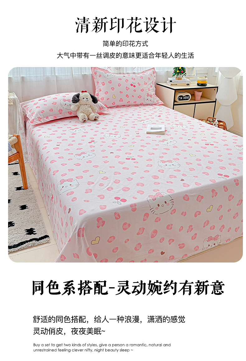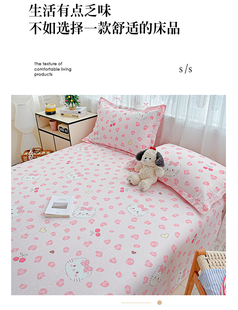 恩泽家纺 2026春夏新款全棉纯棉12868印花四件套及单品系列-单床单床单单件 时尚猫咪粉