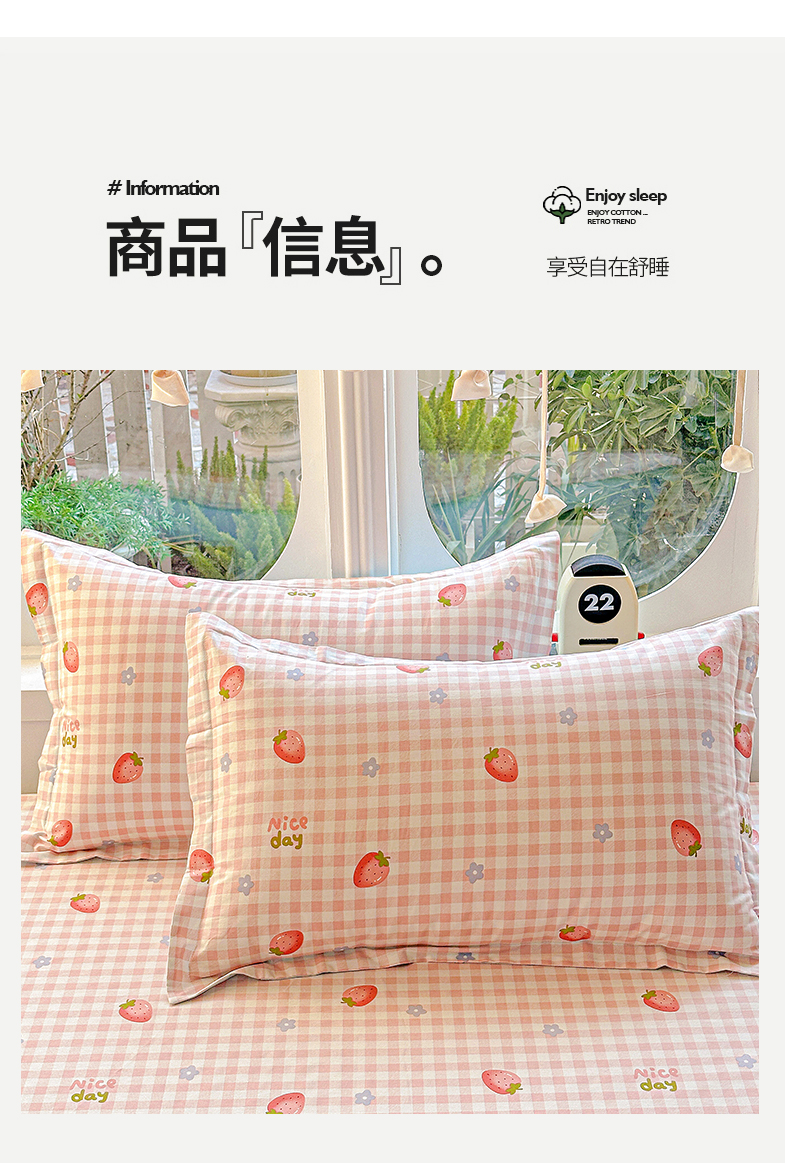 商品名称:恩泽家纺 2026春夏新款全棉纯棉12868印花四件套及单品系列-单枕套枕套单件 樱桃小熊