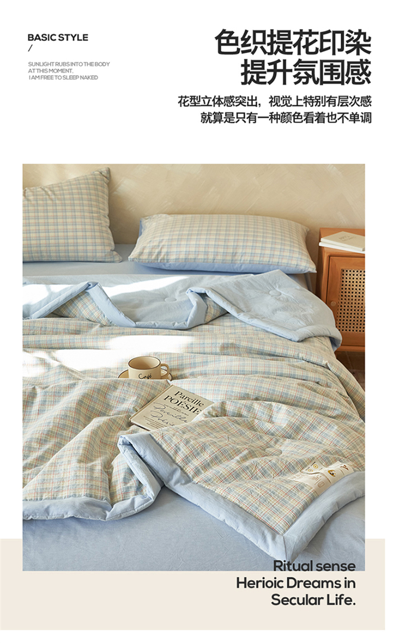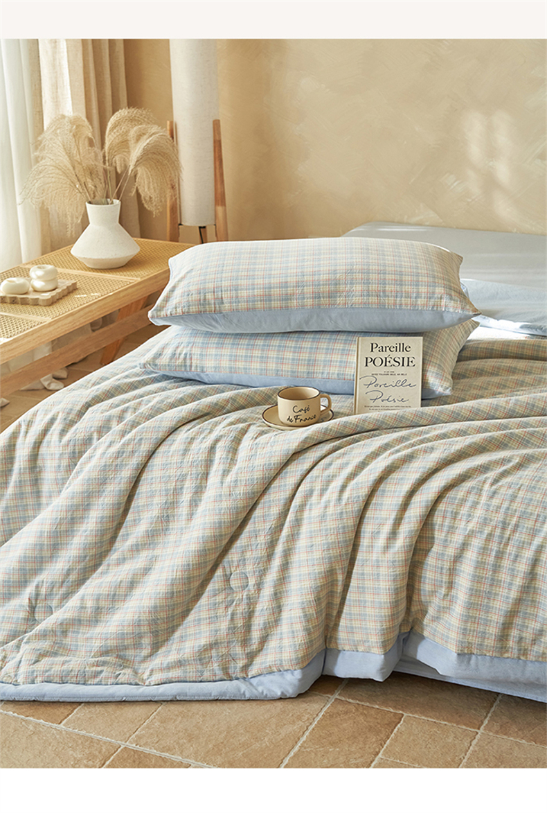 当前位置: 91家纺网 > 商品网购 > 床品套件 > 四件套 > 夏被四件套 > 恒爱家纺 2026新款A类色织全棉水洗夏被四件套 NLS春风-兰