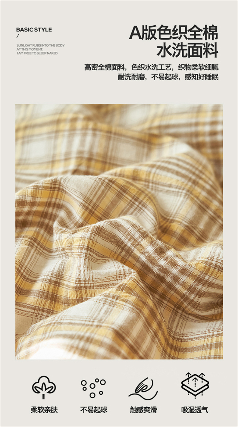 当前位置: 91家纺网 > 商品网购 > 床品套件 > 四件套 > 夏被四件套 > 恒爱家纺 2026新款A类色织全棉水洗夏被四件套 NS利奥-卡其
