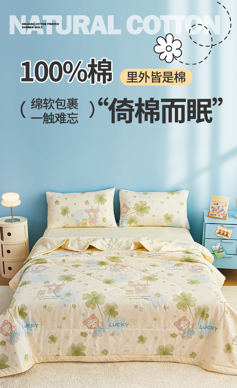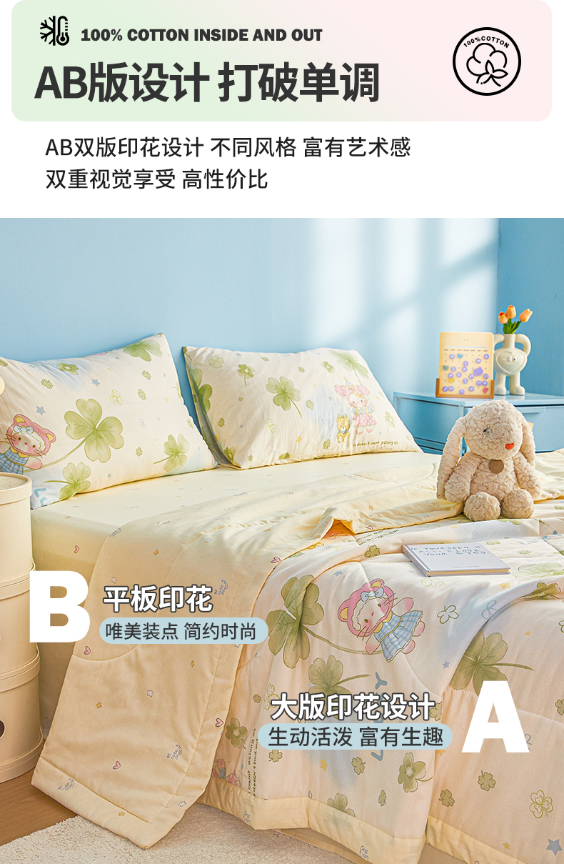 • 91家纺网 家纺一手货源 找家纺 尊妙被业 2026年新款全棉纯棉印花100%棉花夏被四件套被子被芯-卡通风 春日拾叶