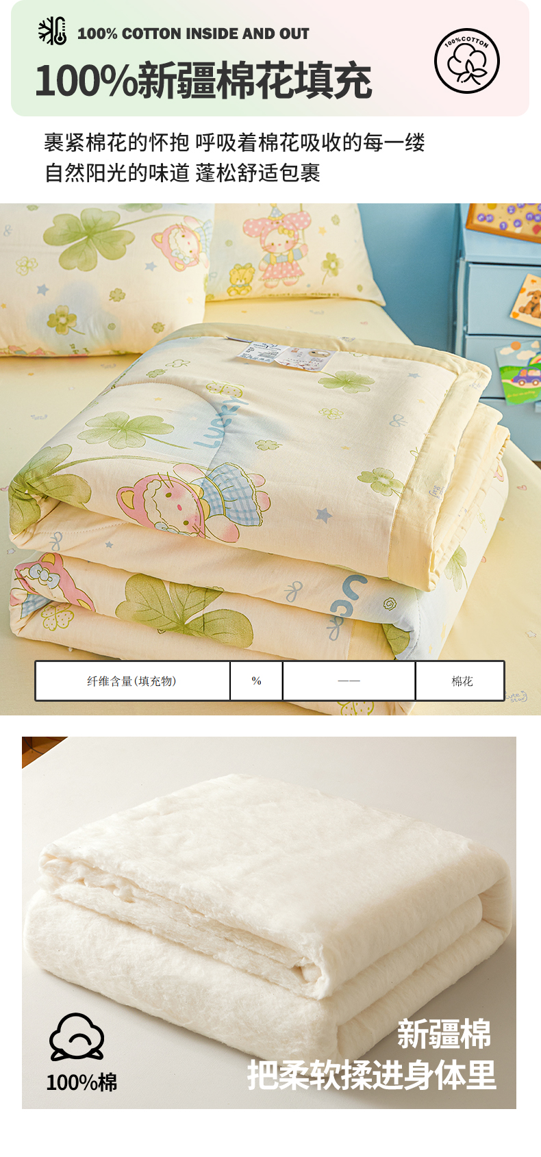 尊妙被业 2026年新款全棉纯棉印花100%棉花夏被四件套被子被芯-卡通风 春日拾叶