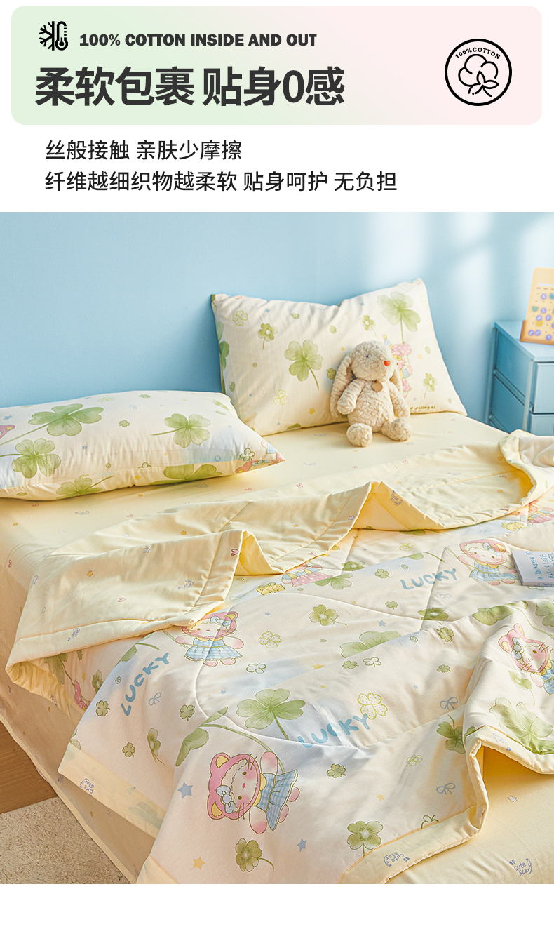 当前位置: 91家纺网 > 商品网购 > 被子 > 普通夏被 > 尊妙被业 2026年新款全棉纯棉印花100%棉花夏被四件套被子被芯-卡通风 春日拾叶