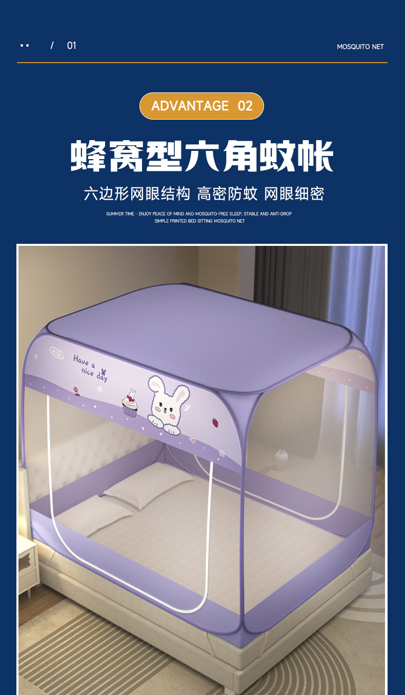 商品名称:佳梦家纺 2026新款双开门防尘顶免安装蚊帐 防尘顶紫萌兔