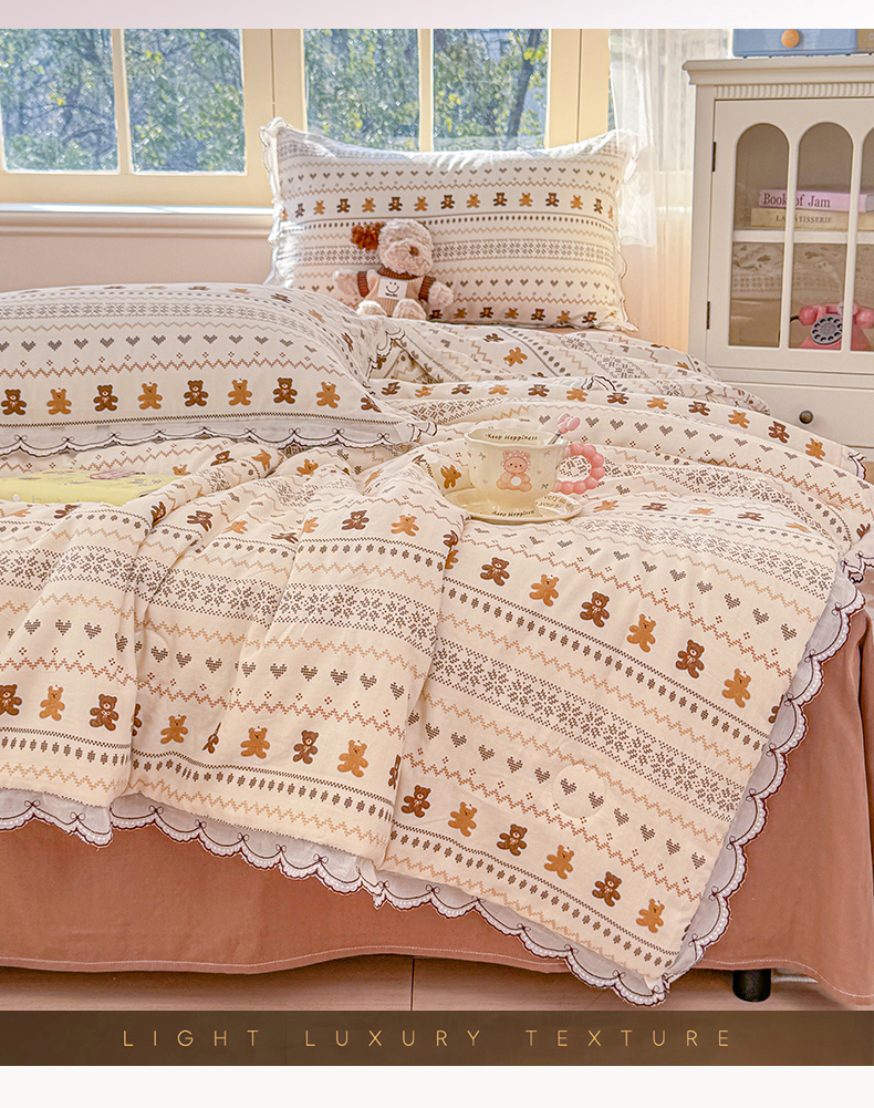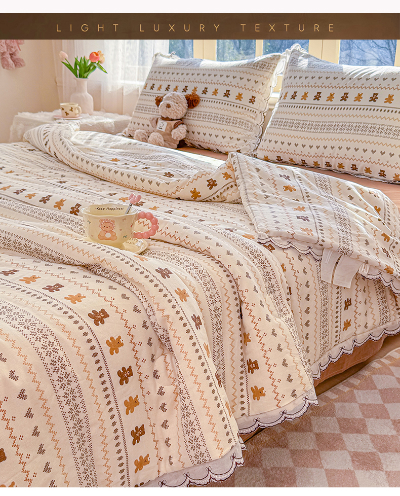 (总)被窝家纺 2026新款全棉纯棉有氧双层纱多功能夏被夏凉被空调被四件套,车厘子,费尔岛小熊,蓝风铃,蓝色泡泡,绿玫瑰,萌星,柠檬花,泡芙狗,清桃-粉,小野花,樱桃甜心,紫罗兰