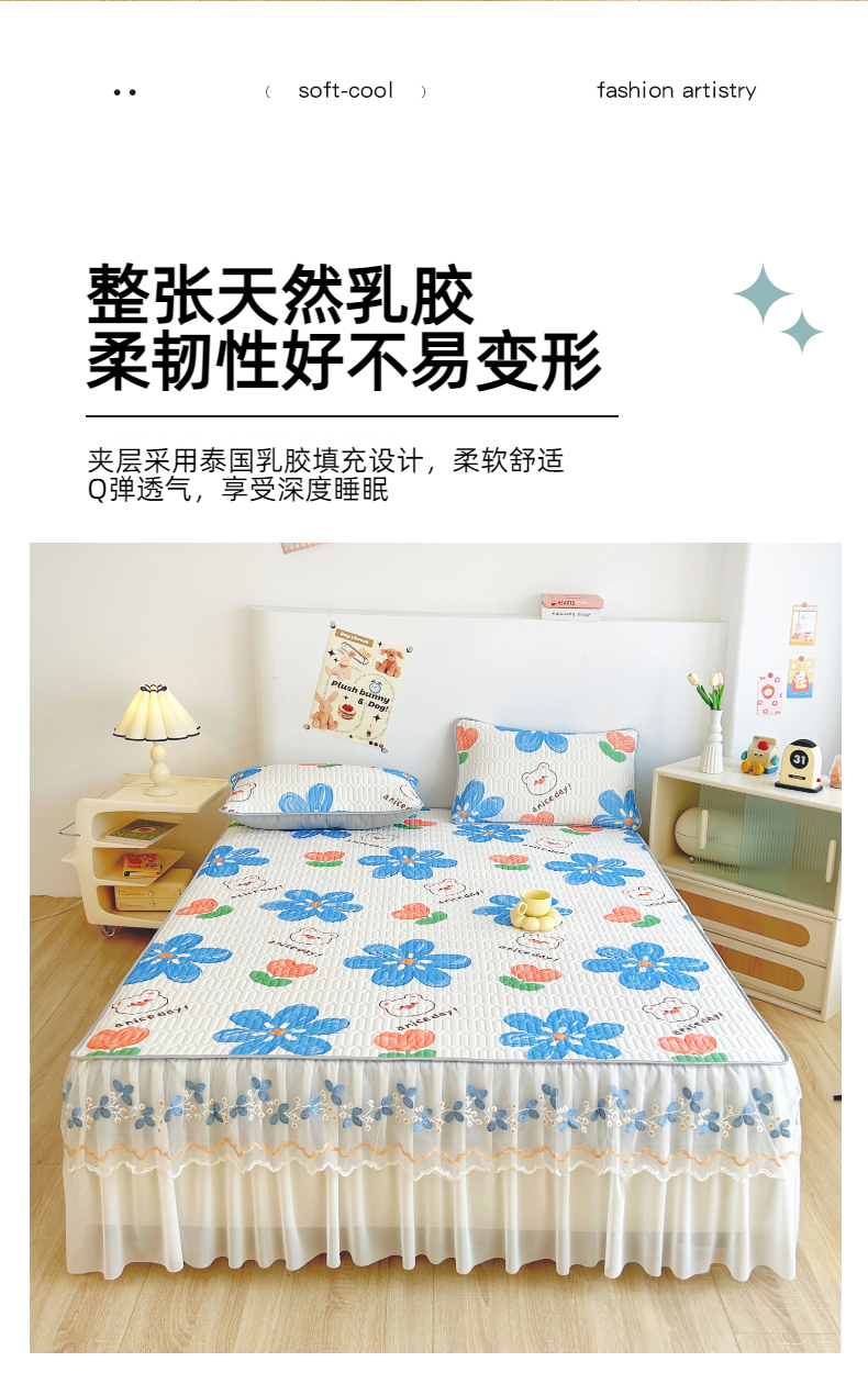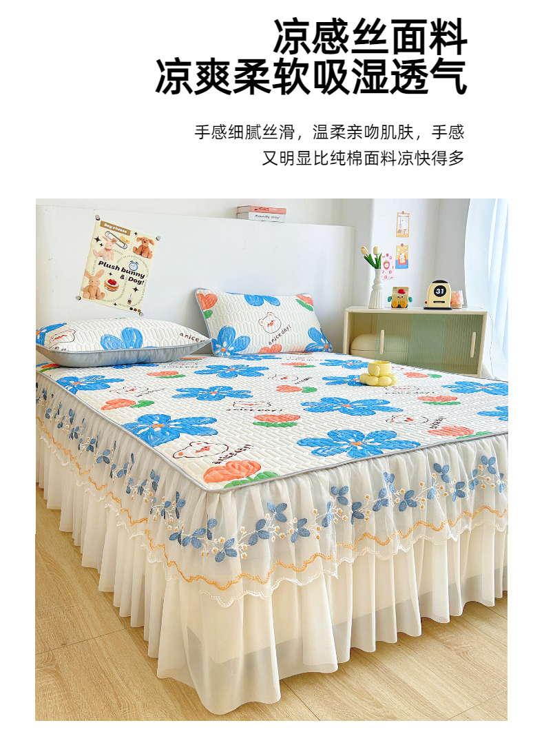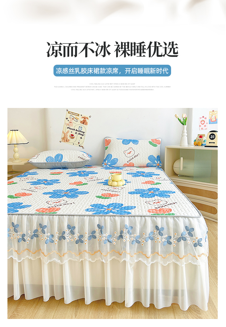 商品名称:能好家纺 2026春夏新款小清新乳胶床裙款凉席席子 夏韵