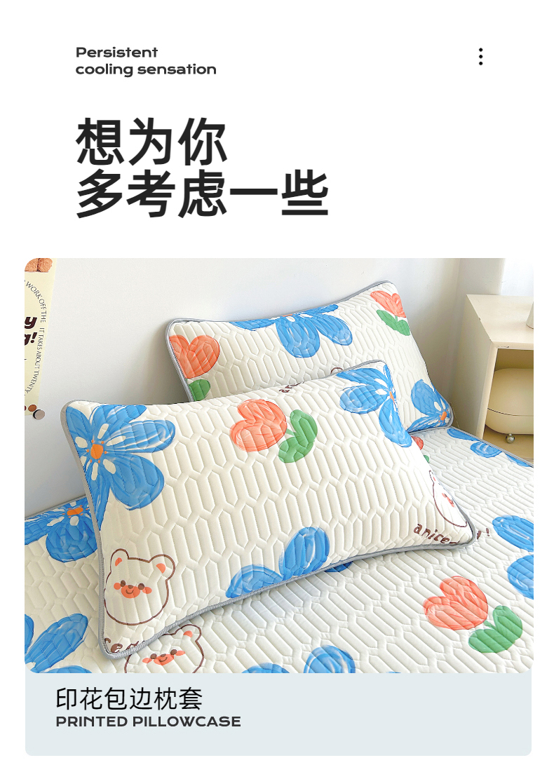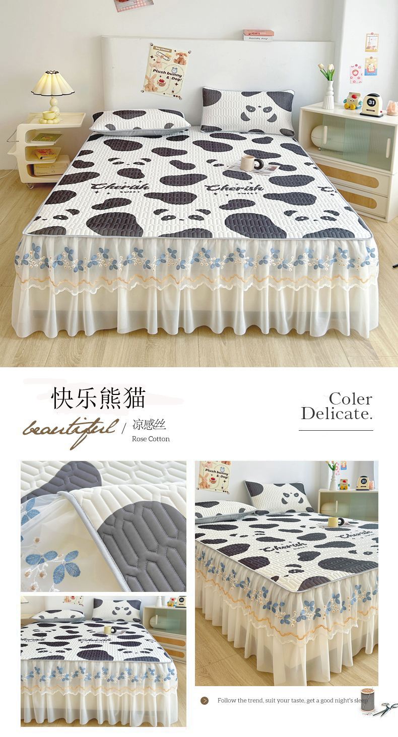 (总)能好家纺 2026春夏新款纯色+印花凉感丝乳胶凉席床裙款三件套,薄荷绿,豆沙,灰色,酒红,孔雀蓝,墨绿,雪青,棕色,古韵,小熊,雅韵,幽梦