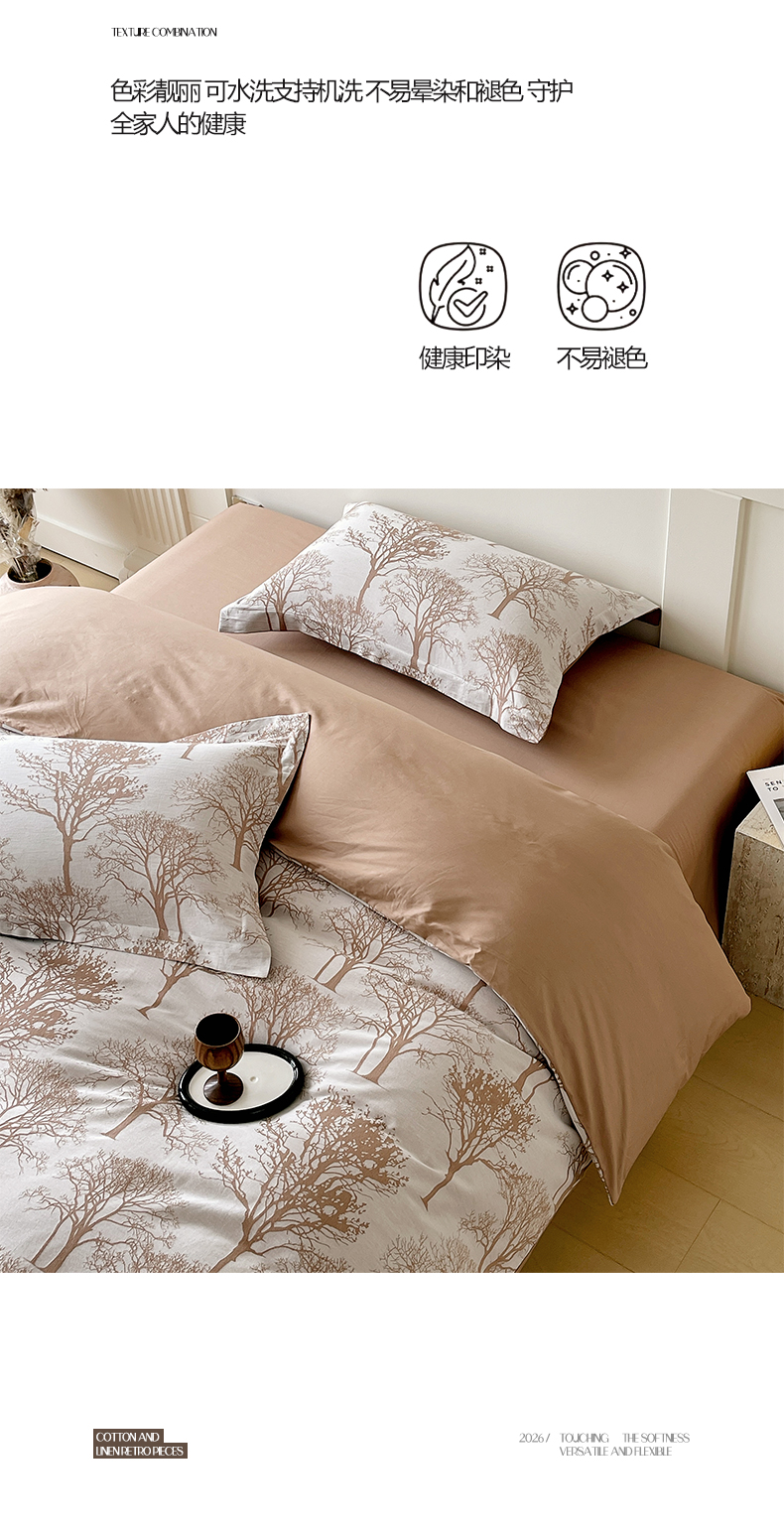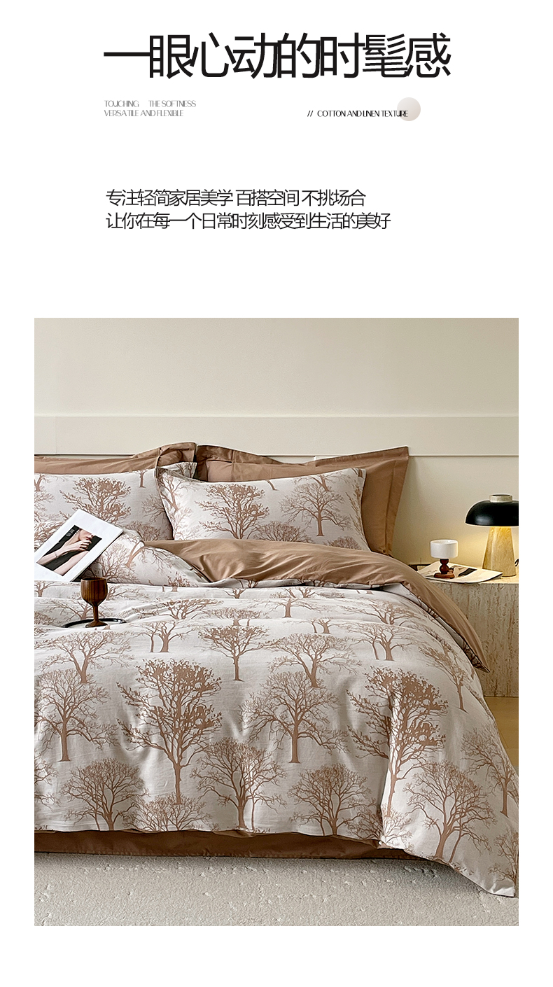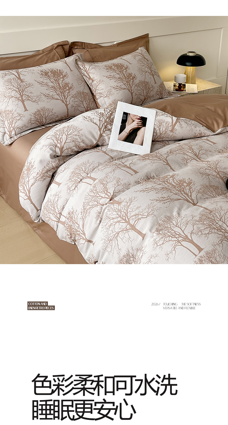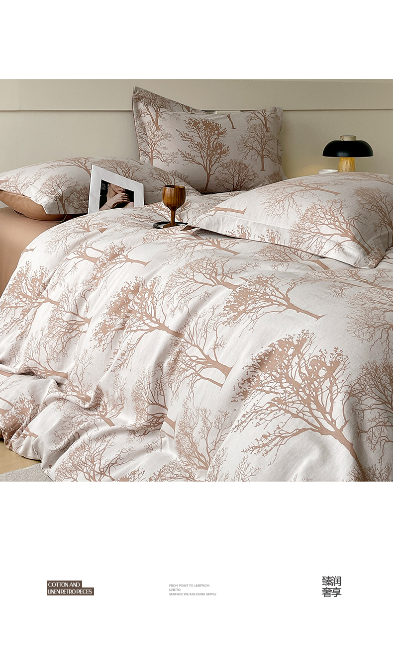 (总)帅露家纺 2025新款A类棉麻活性印染四件套系列,花间意境-红,花间意境-灰,花香满园-红,素锦-咖,香叶时代,映霜-灰,映霜-绿
