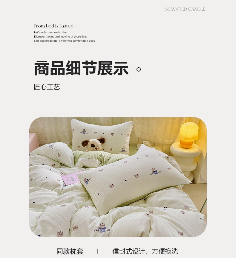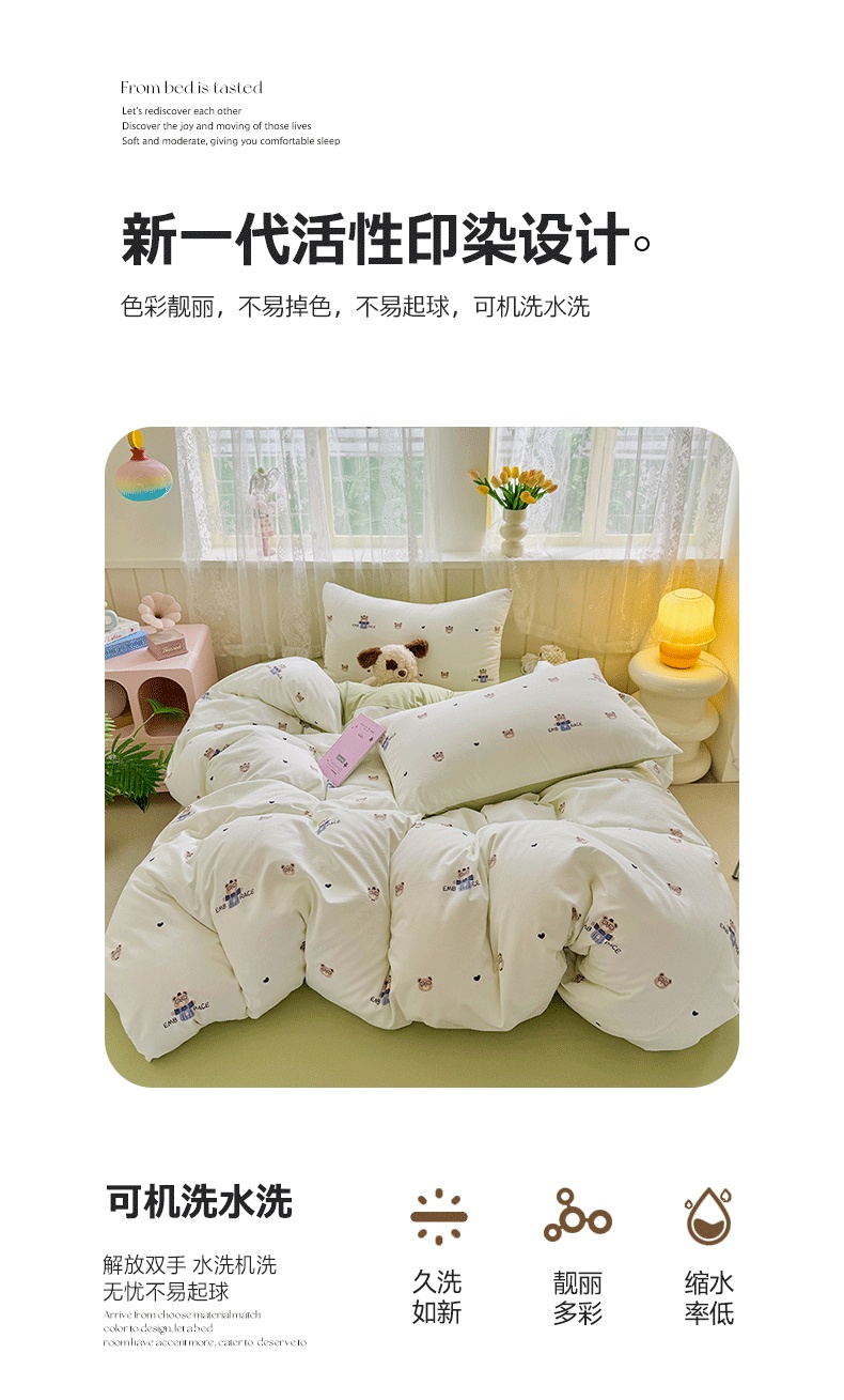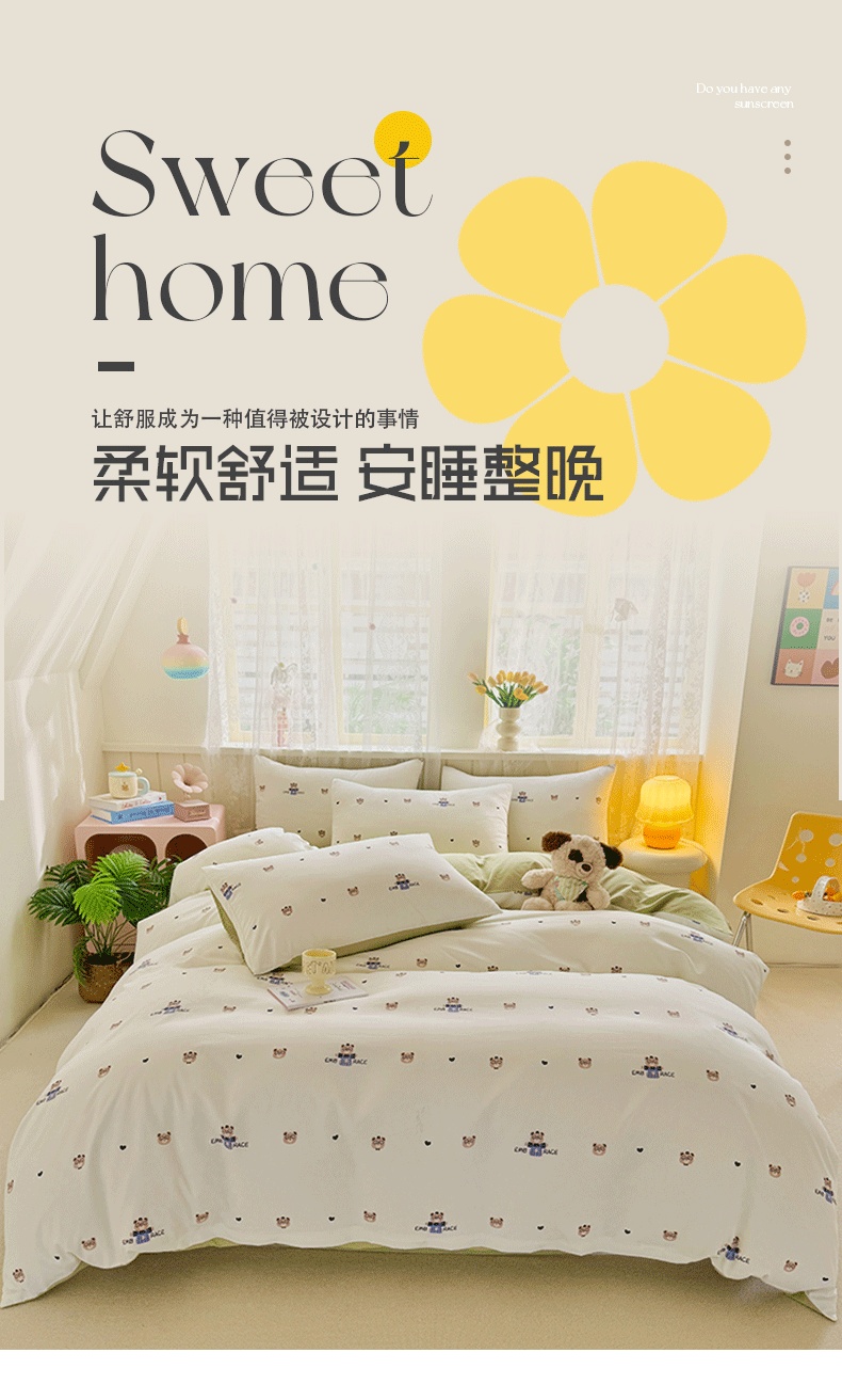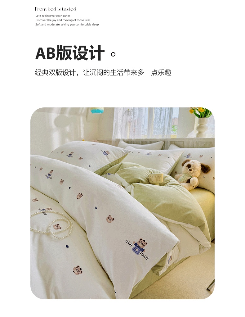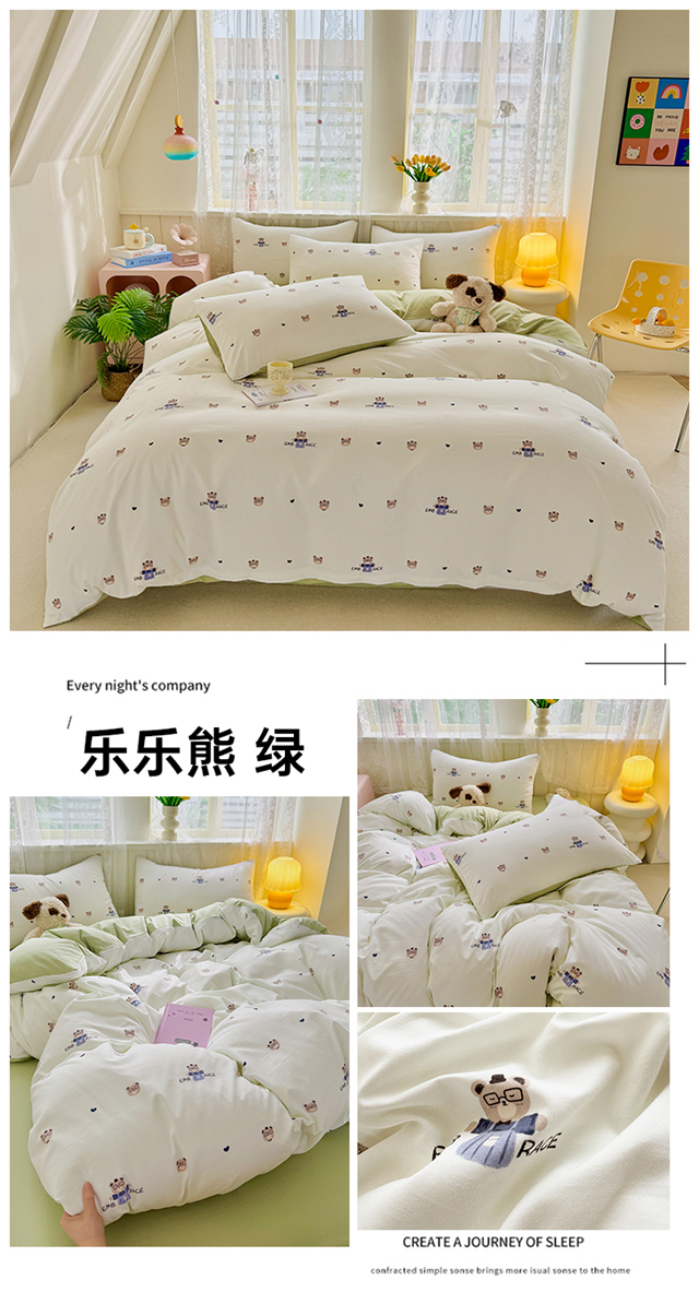 当前位置: 91家纺网 > 商品网购 > 床品套件 > 四件套 > 水洗棉四件套 > 简冠家纺 2026新款仿棉水洗棉四件套 乐乐熊 绿