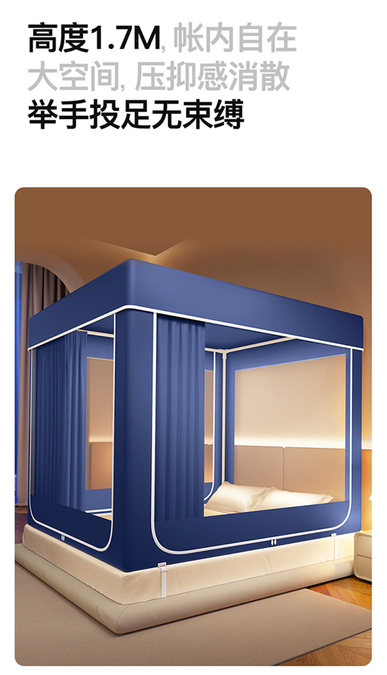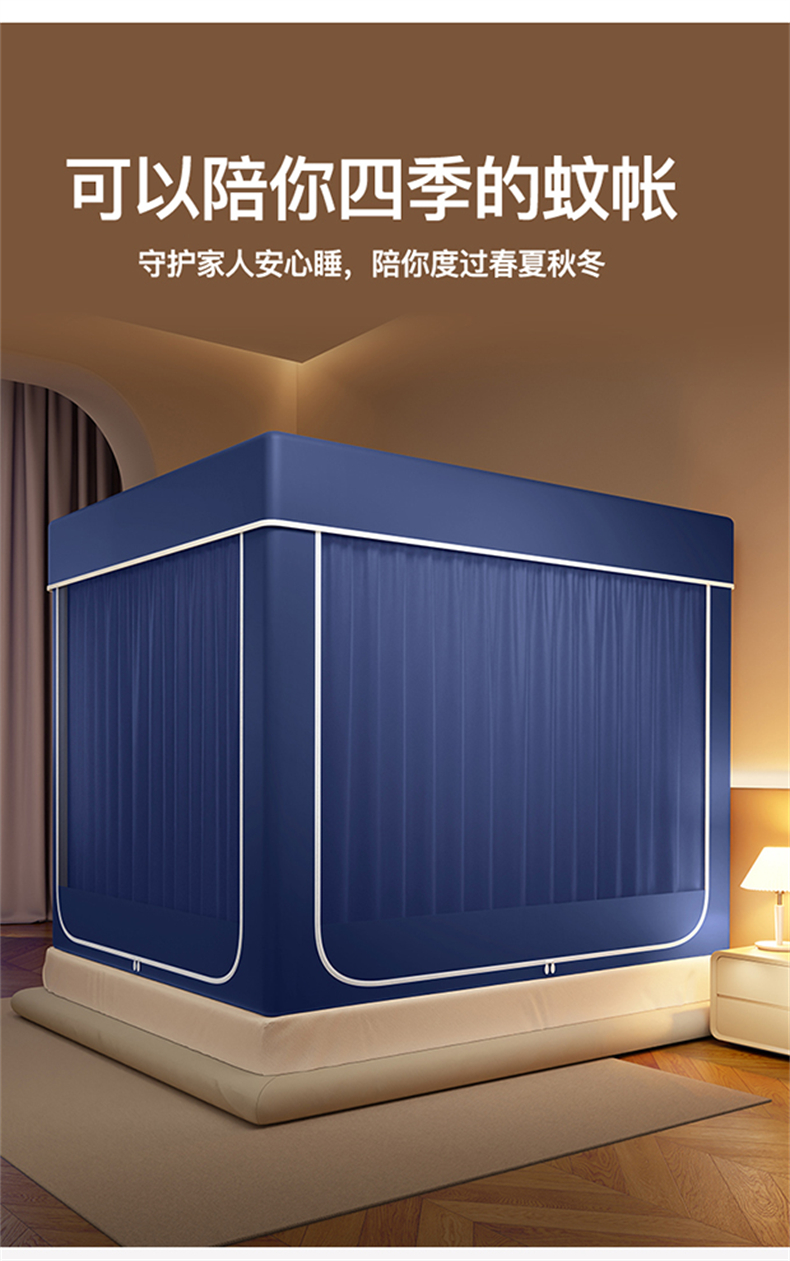 当前位置: 91家纺网 > 商品网购 > 床上用品 > 蚊帐 > 坐床式蚊帐 > 佳梦家纺 2026春夏新款护栏级防摔坐床蚊帐永夜系列 永夜蓝-夹棉款三门半底