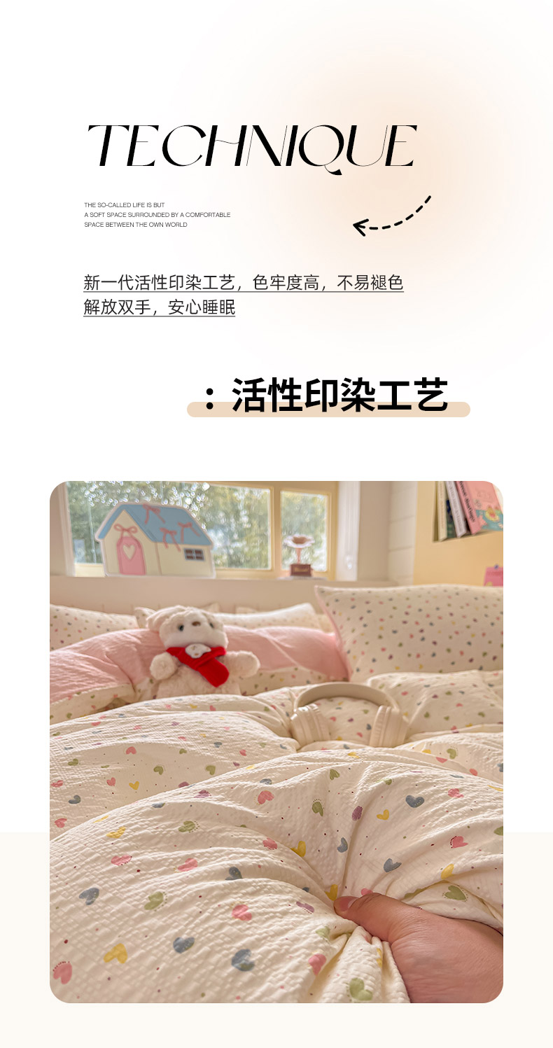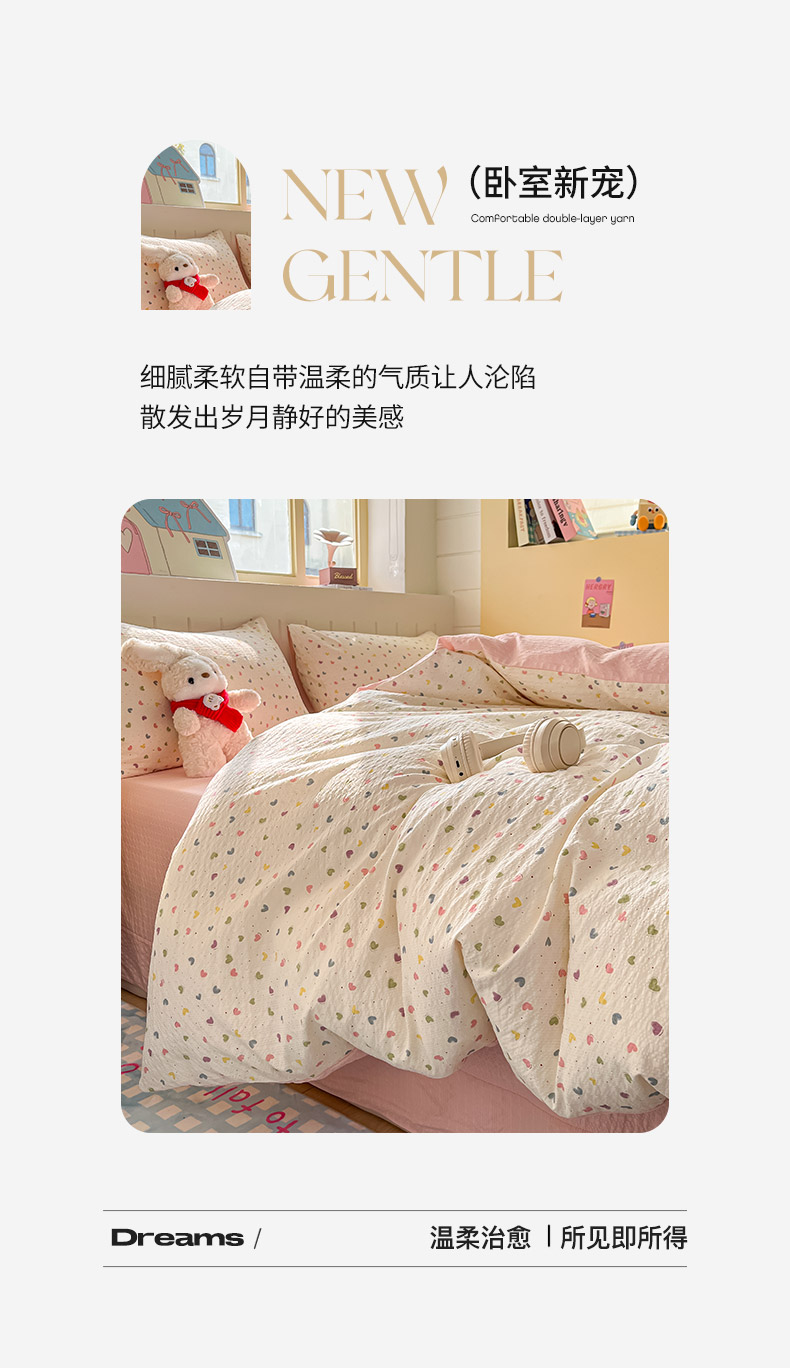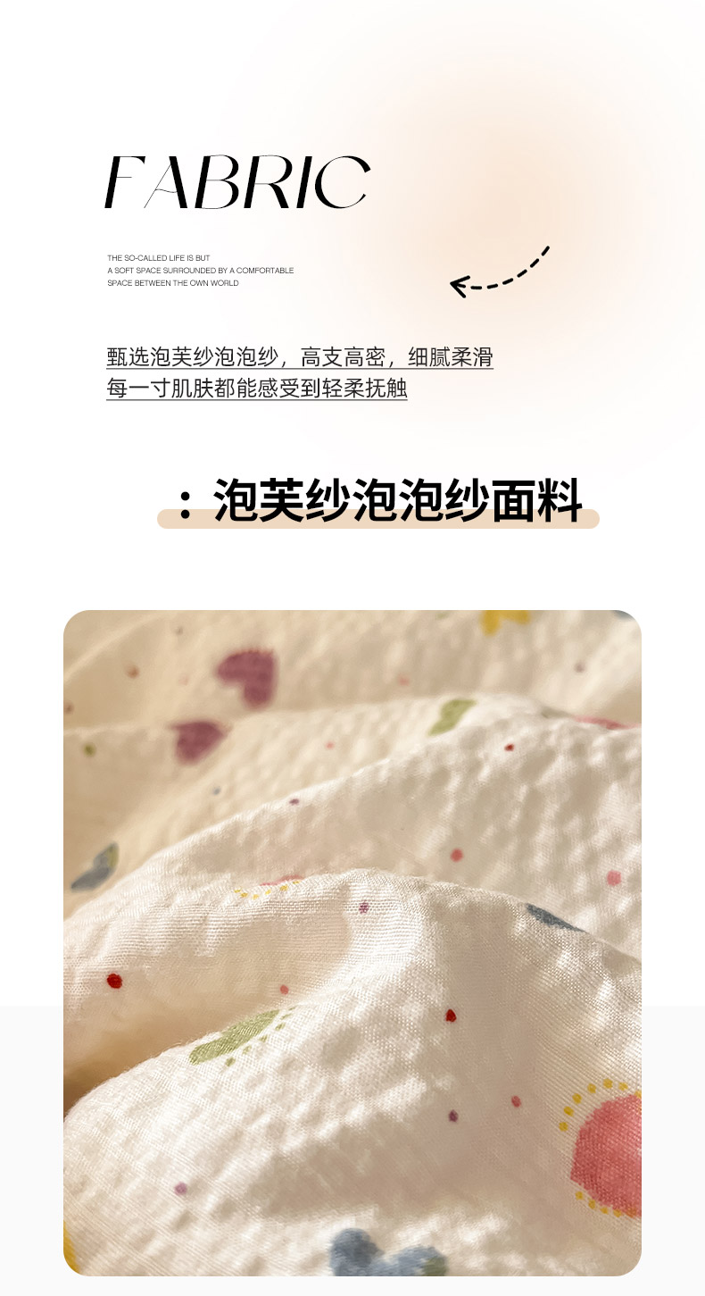 当前位置: 91家纺网 > 商品网购 > 床品套件 > 四件套 > 其它四件套 > 金梦拉家纺 2026新款A类高品质高克重超柔泡芙纱泡泡纱小清新四件套 心爱