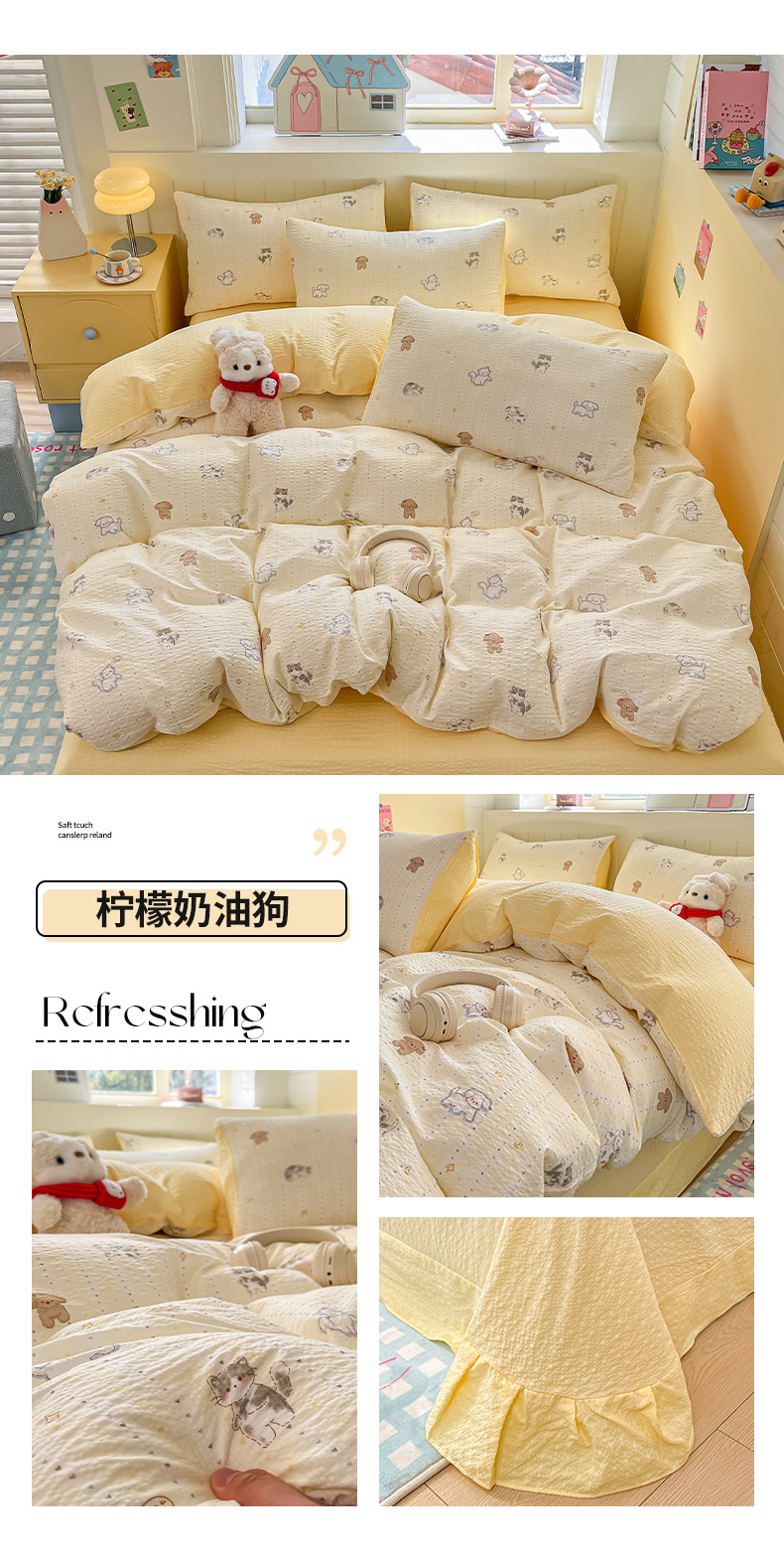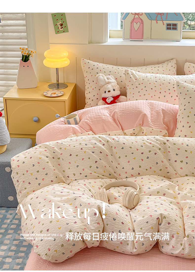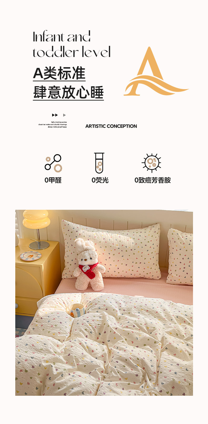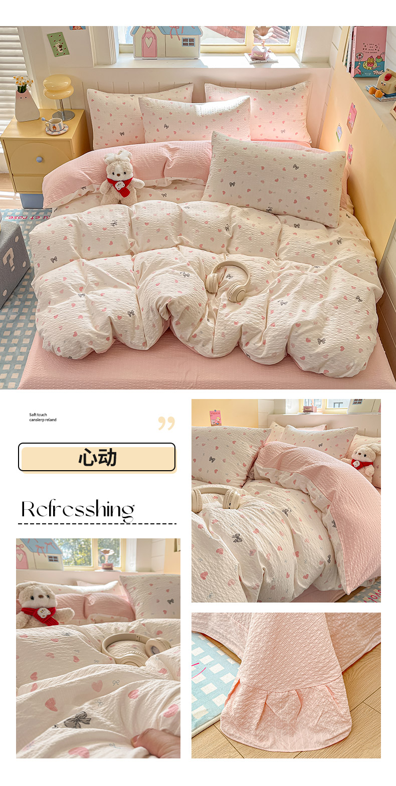 当前位置: 91家纺网 > 商品网购 > 床品套件 > 四件套 > 其它四件套 > 金梦拉家纺 2026新款A类高品质高克重超柔泡芙纱泡泡纱小清新四件套 心爱