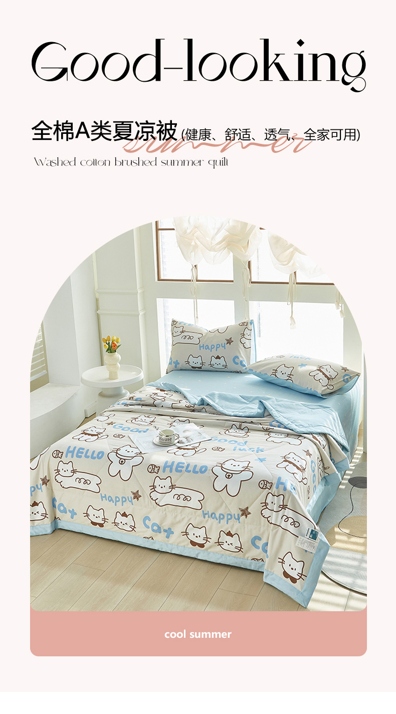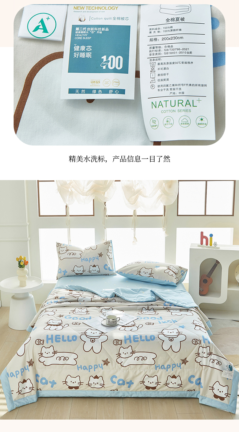 商品名称:黛妮雅 2026新款双面全棉羽丝夏被幸运猫咪
