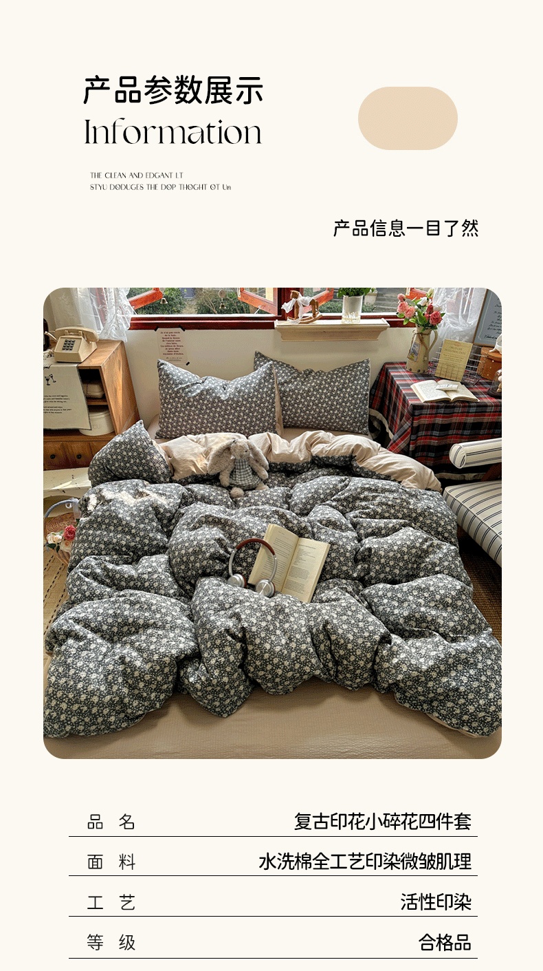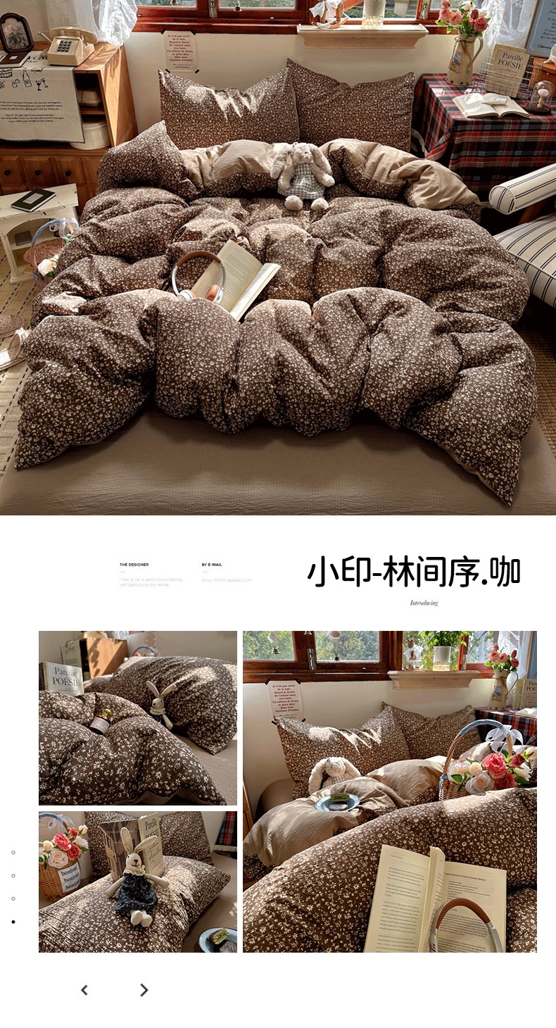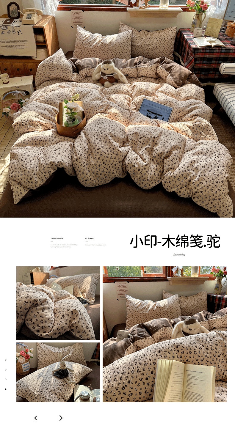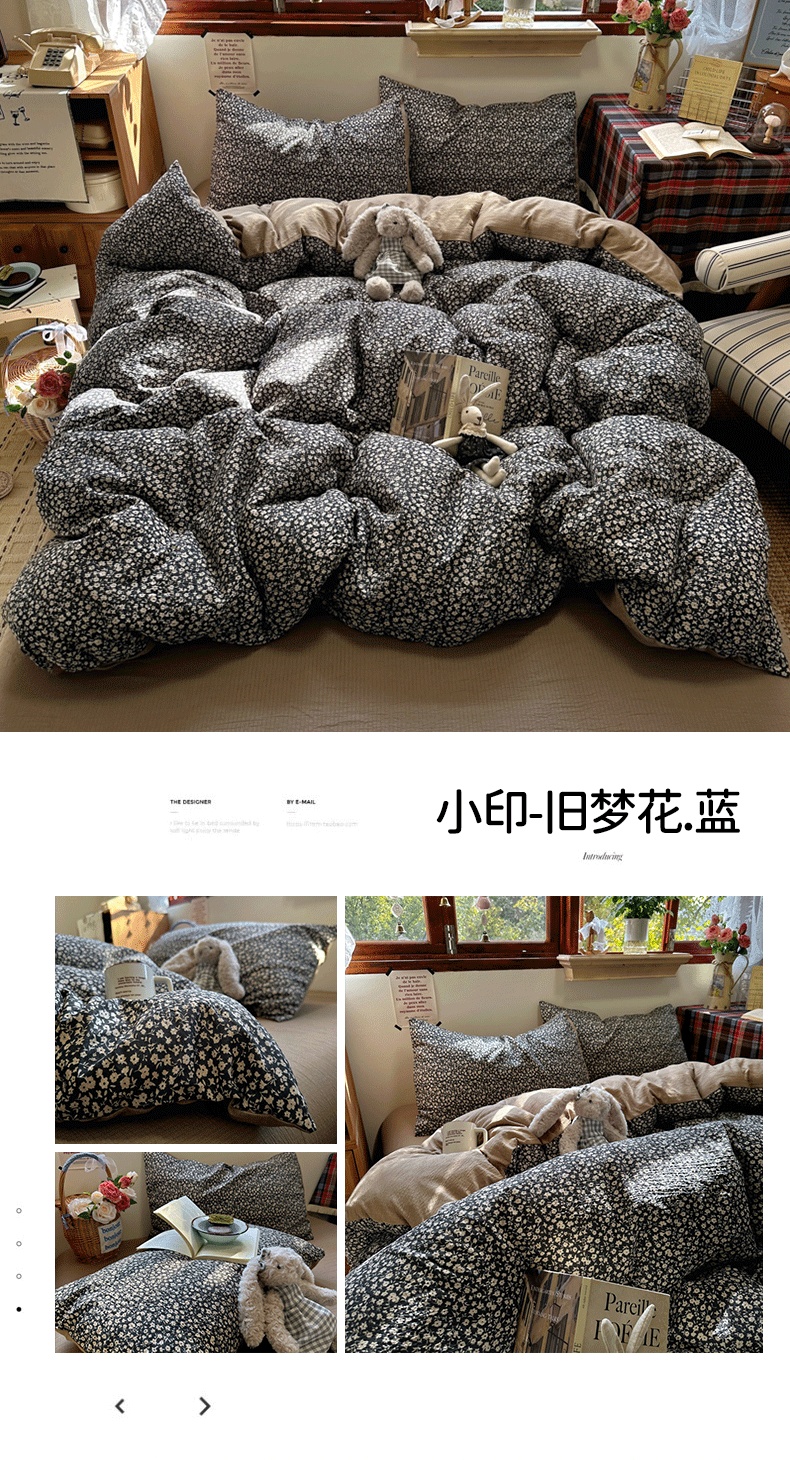 商品名称:(总)阿曼达 2026新款日韩系复古印花小碎花软糯贴肤慵懒伴眠超治愈的床单床笠款四件套【专版花型】