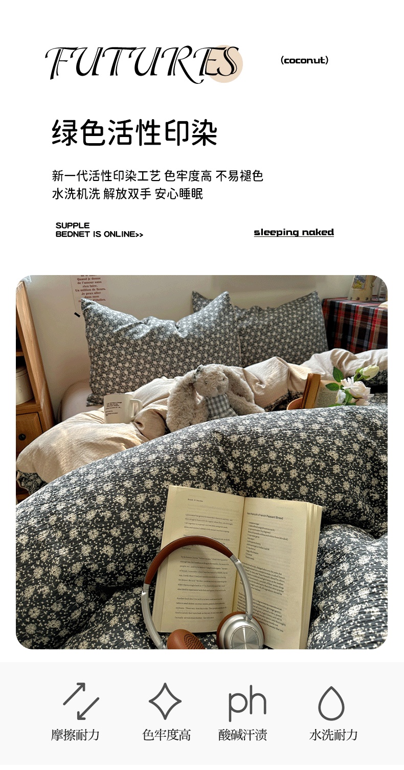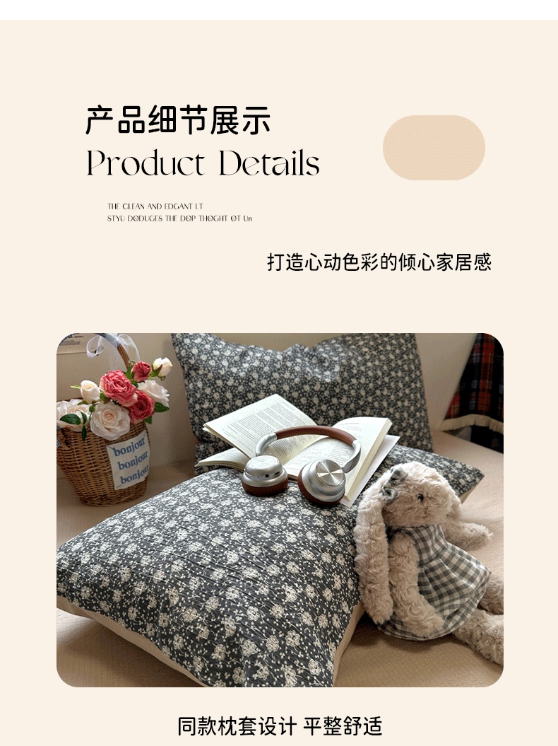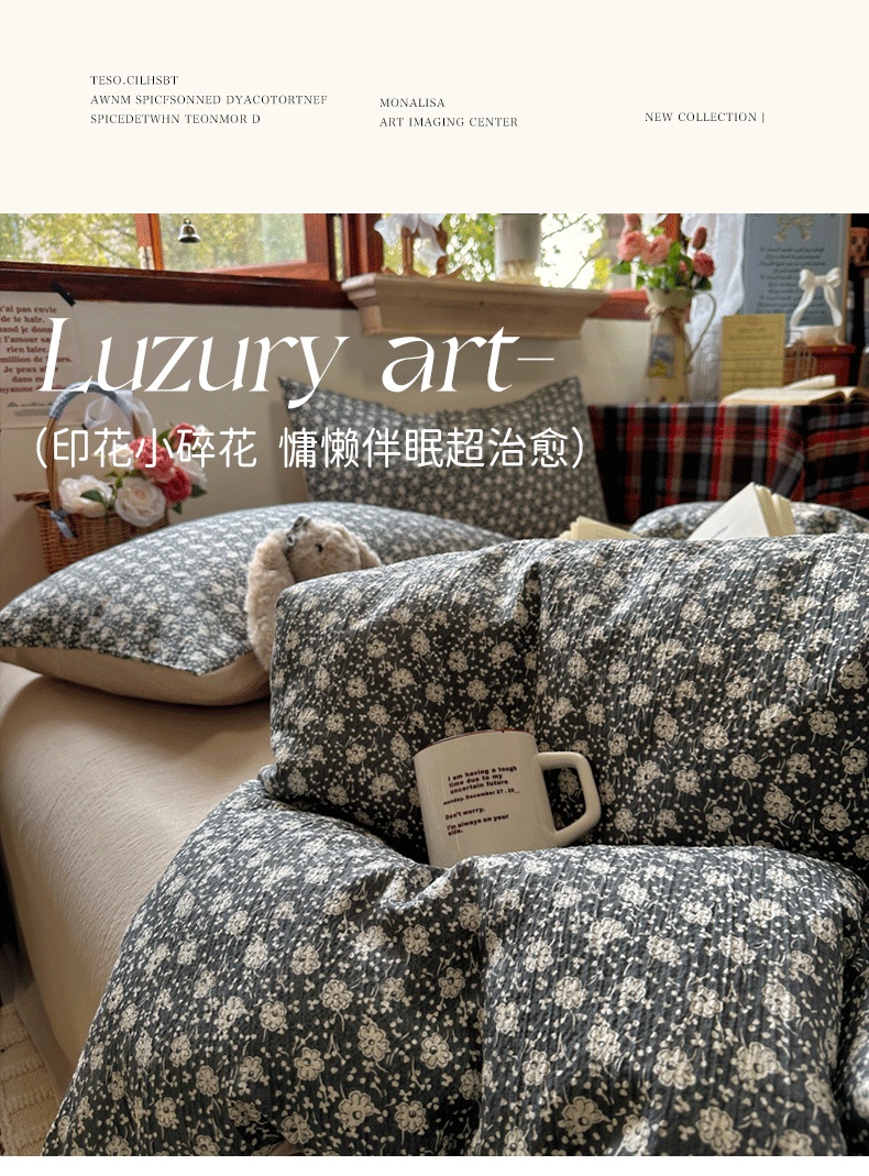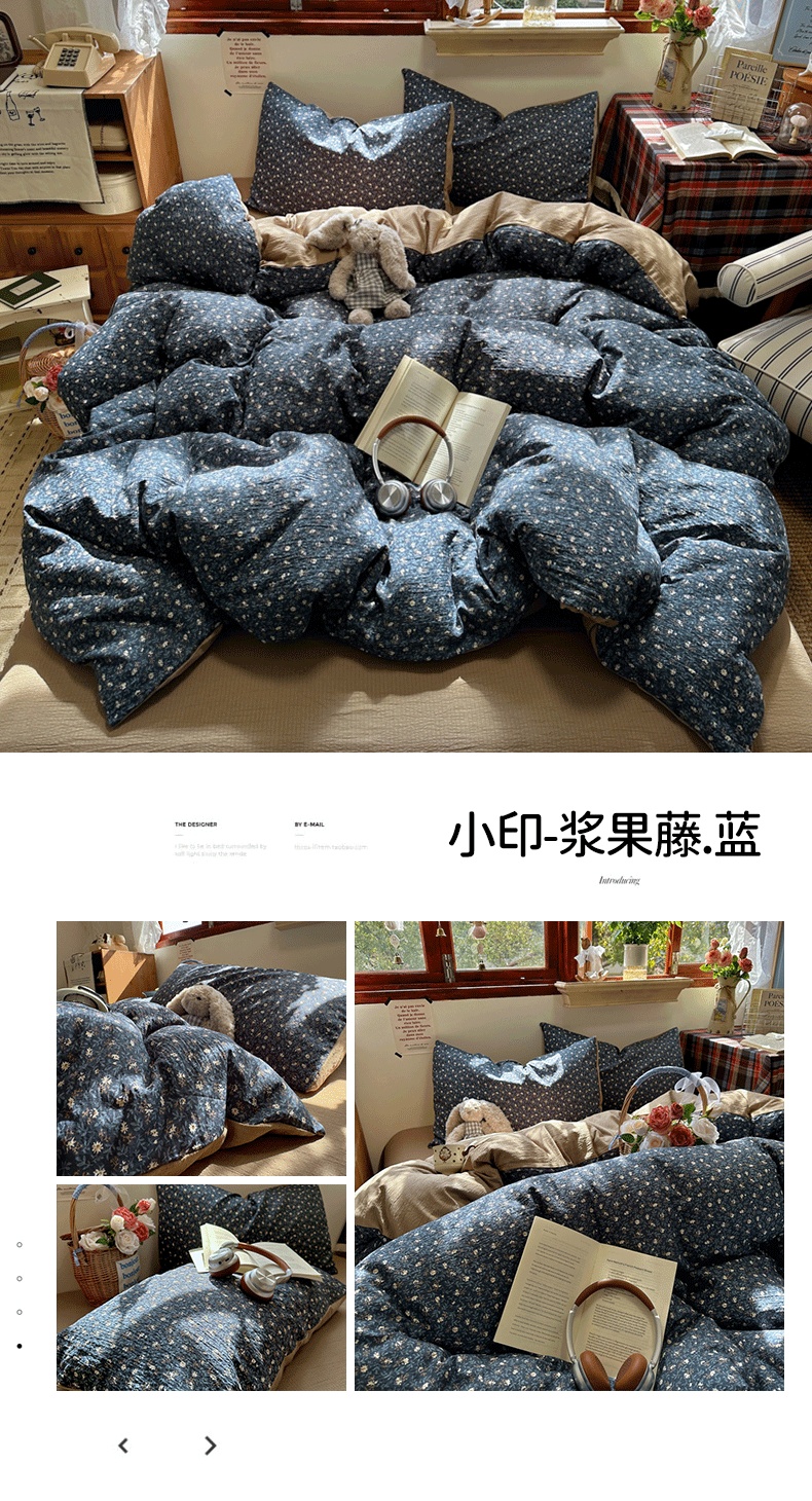 商品名称:(总)阿曼达 2026新款日韩系复古印花小碎花软糯贴肤慵懒伴眠超治愈的床单床笠款四件套【专版花型】
