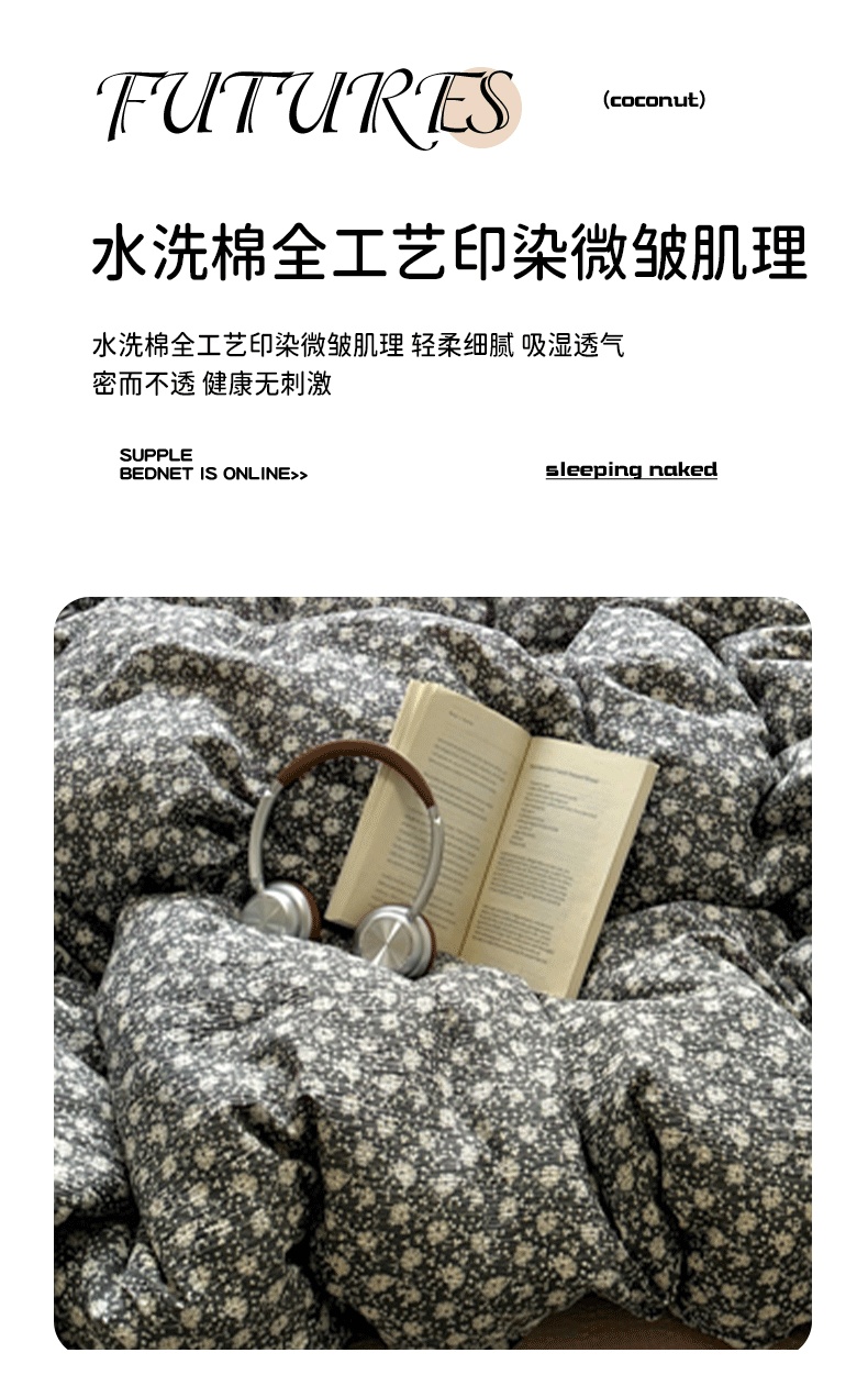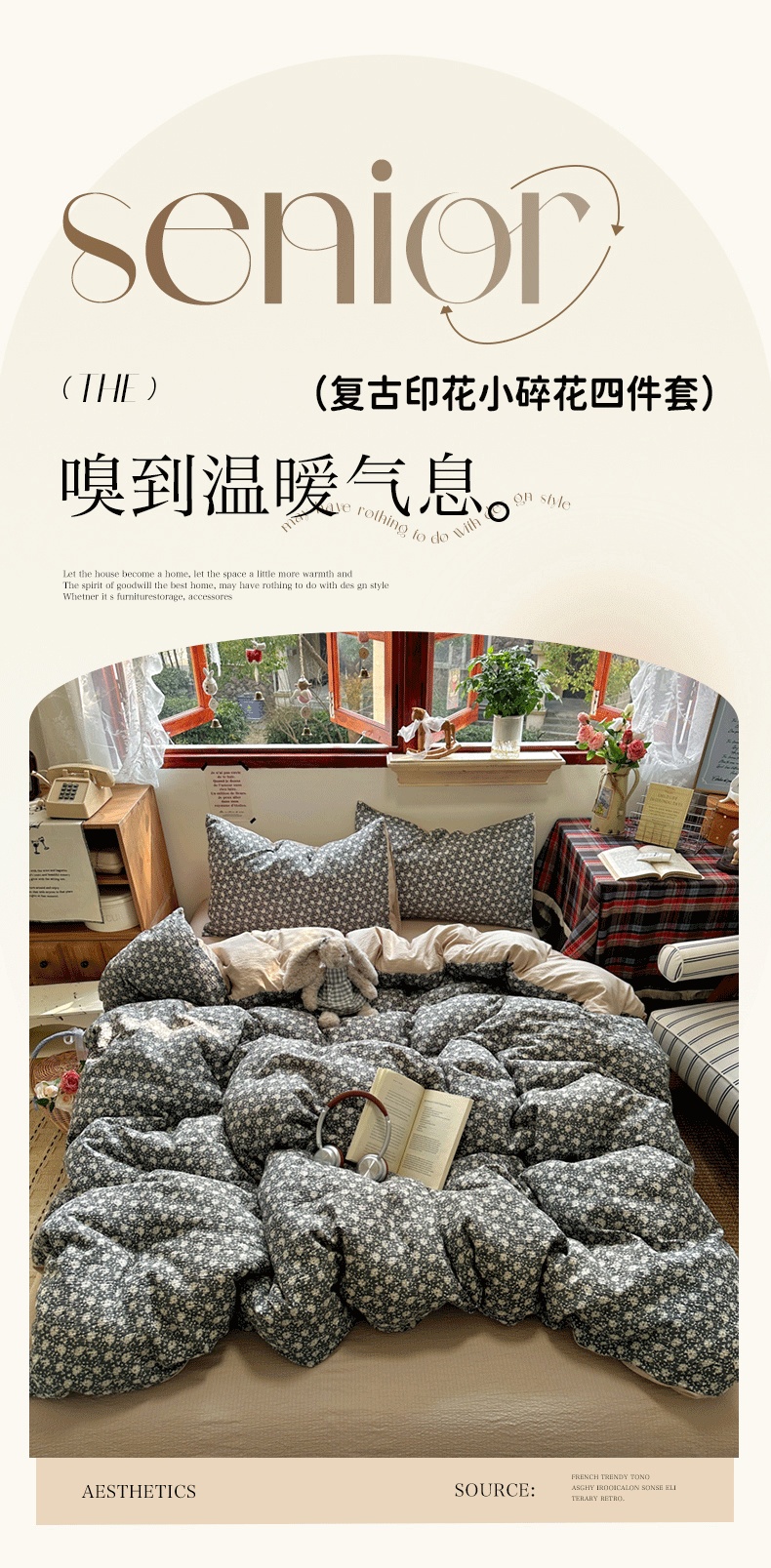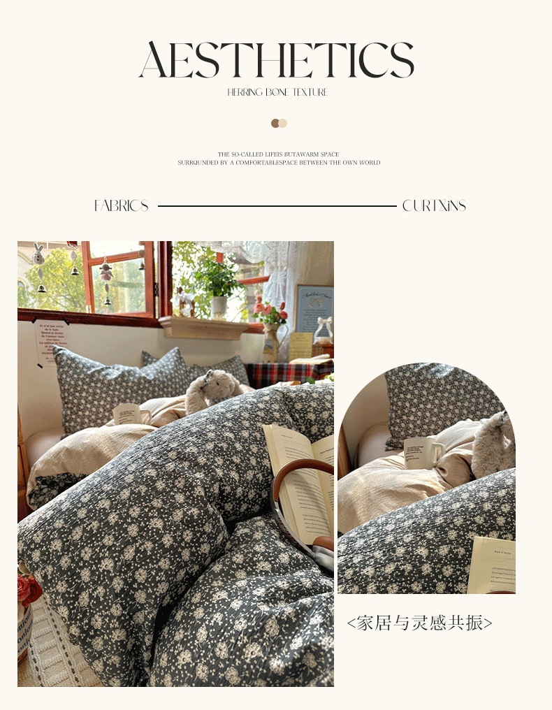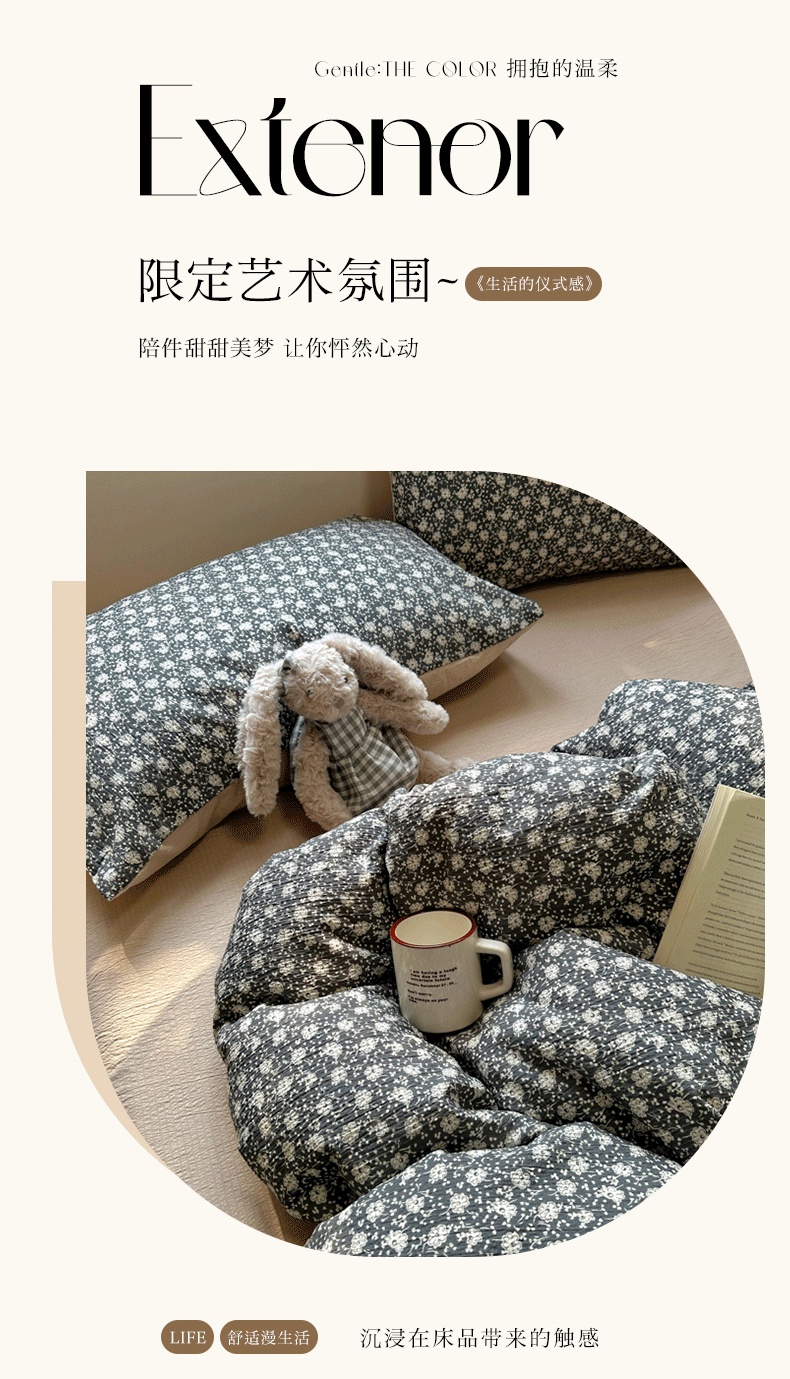 商品名称:(总)阿曼达 2026新款日韩系复古印花小碎花软糯贴肤慵懒伴眠超治愈的床单床笠款四件套【专版花型】