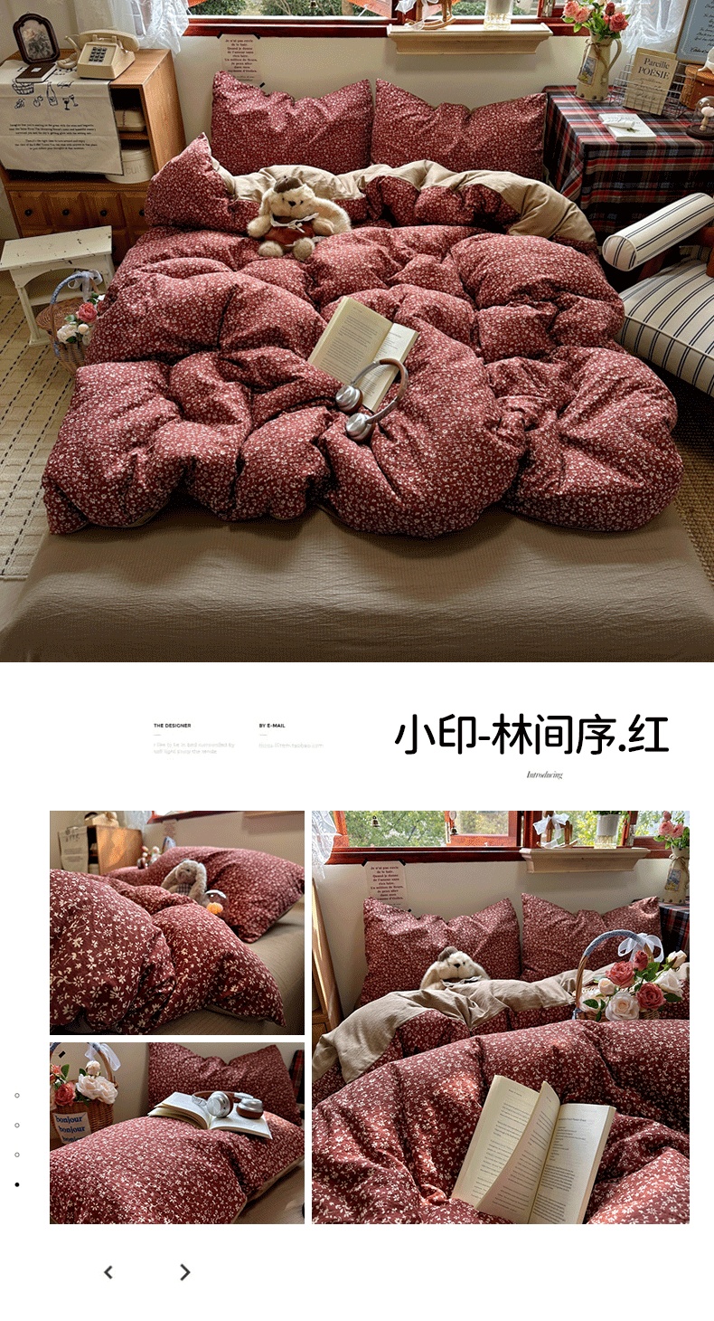 (总)阿曼达 2026新款印花复古森系小碎花花边款四件套【专版花型】,复古森系-浆果藤-红,复古森系-林间序-奶白,复古森系-松月间-米,复古森系-木棉笺-驼,复古森系-朝花辞-米