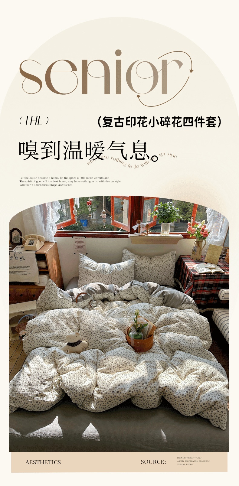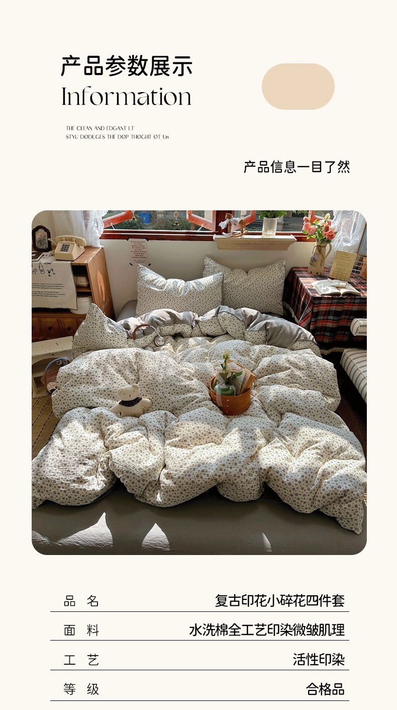 当前位置: 91家纺网 > 商品网购 > 床品套件 > 四件套 > 化纤活性四件套 > 阿曼达 2026新款日韩系复古印花小碎花软糯贴肤慵懒伴眠超治愈的床单床笠款四件套 小印-浅花.米灰【专版花型】