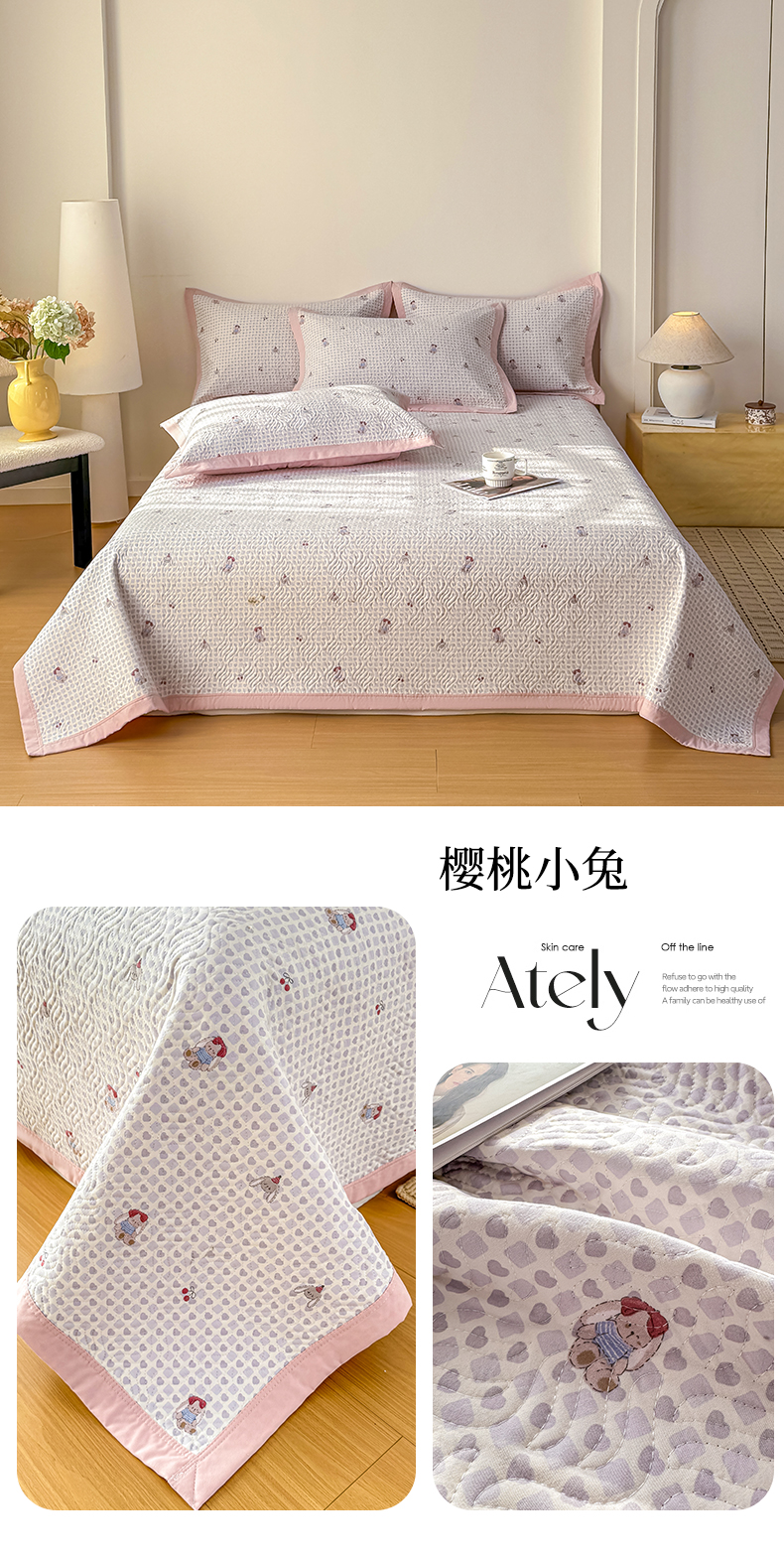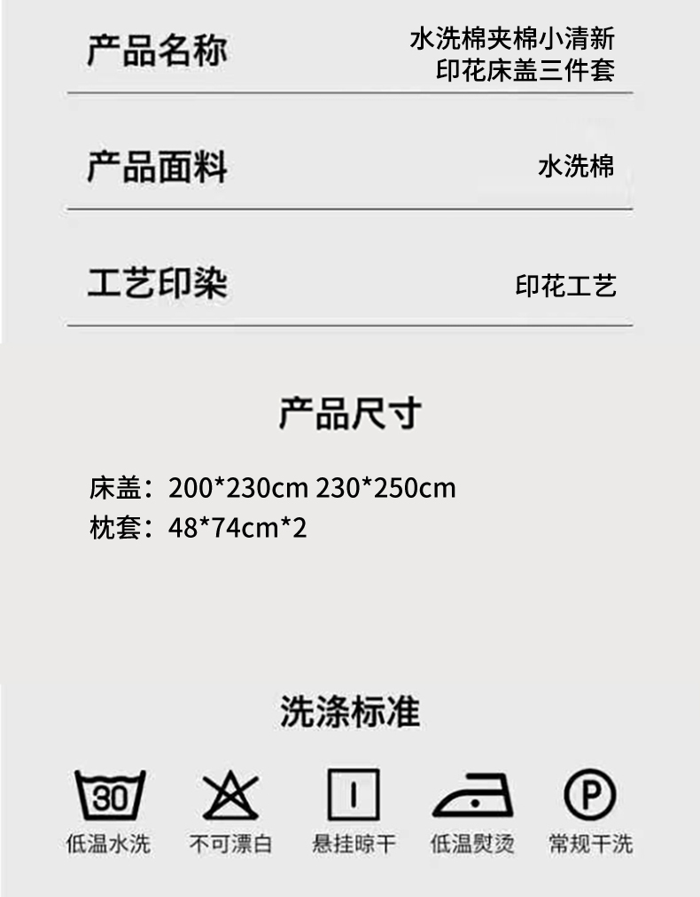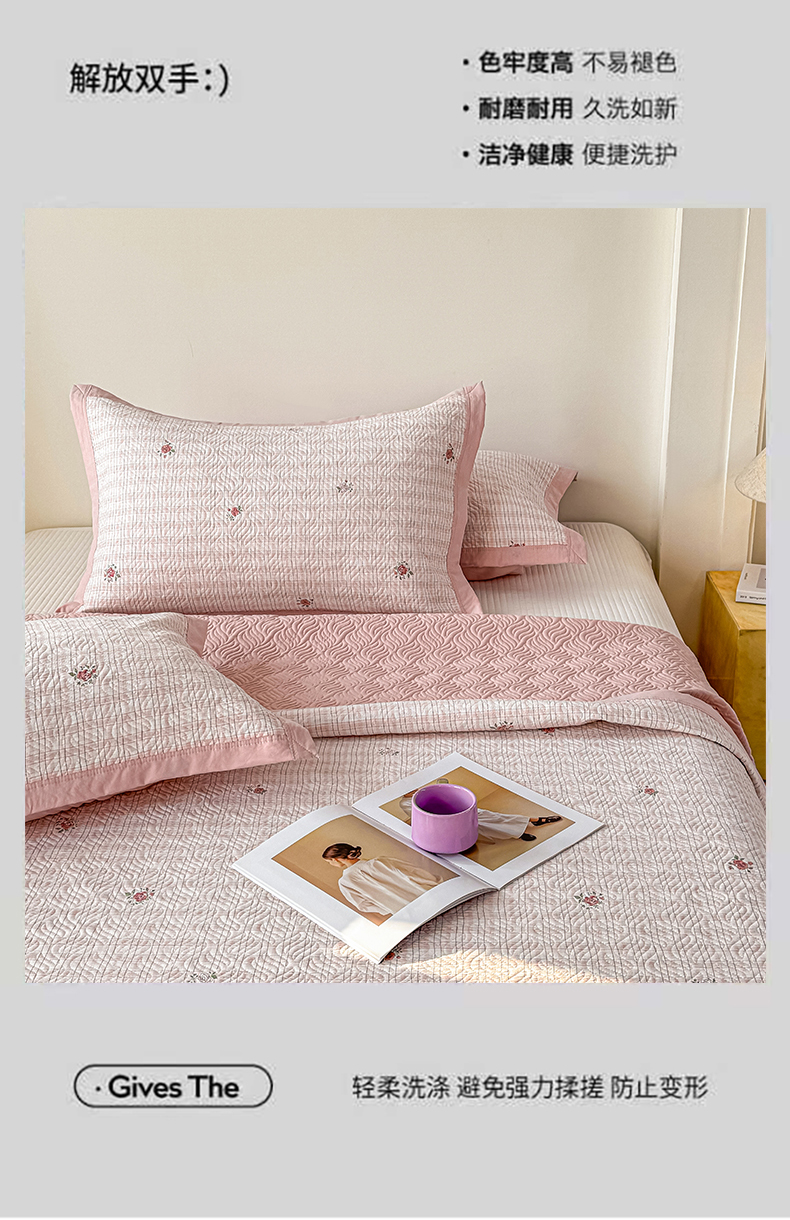 商品名称:(总)优贝家纺 2026春夏新款水洗棉小清新印花夹棉多功能床盖三件套