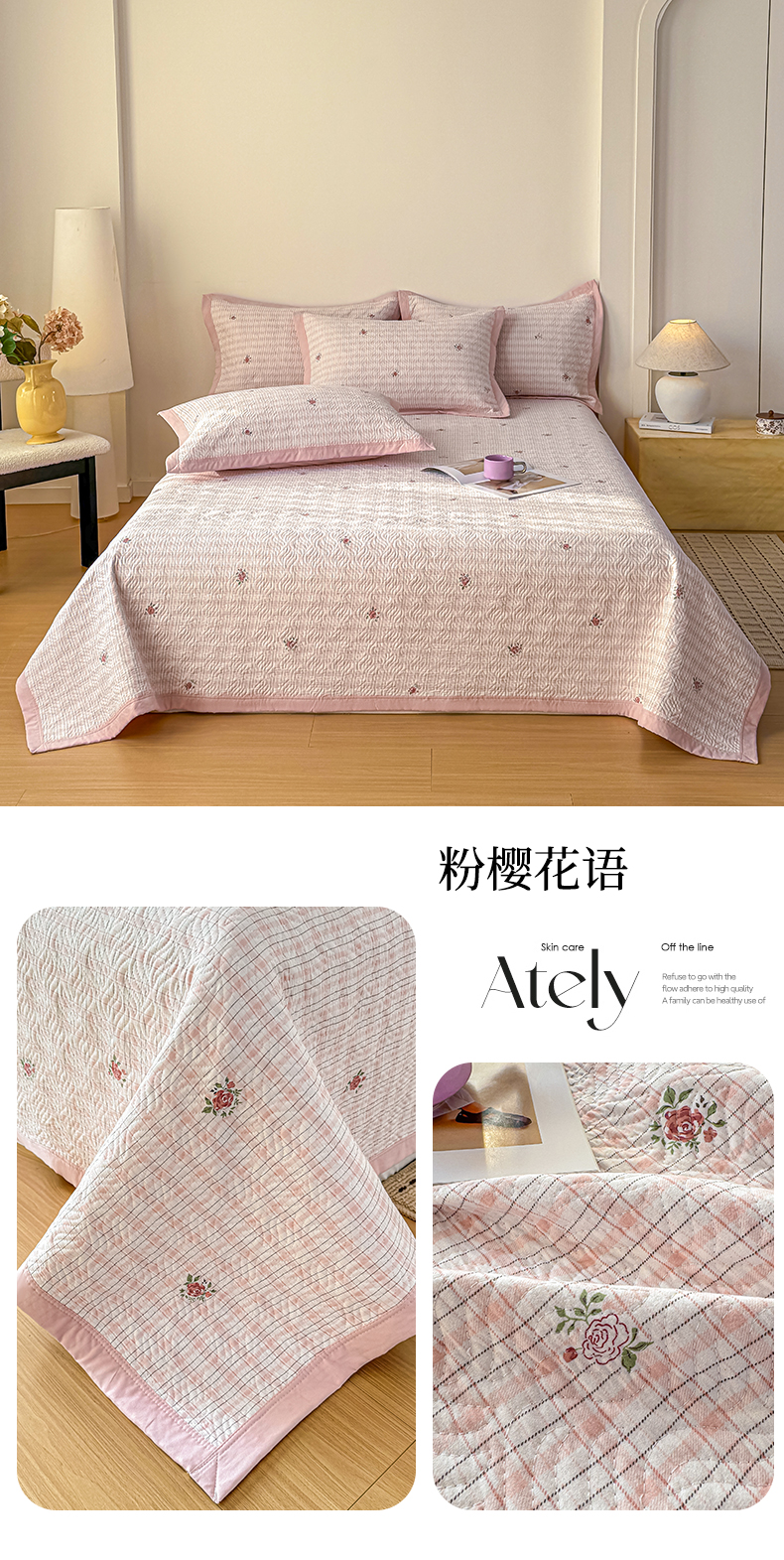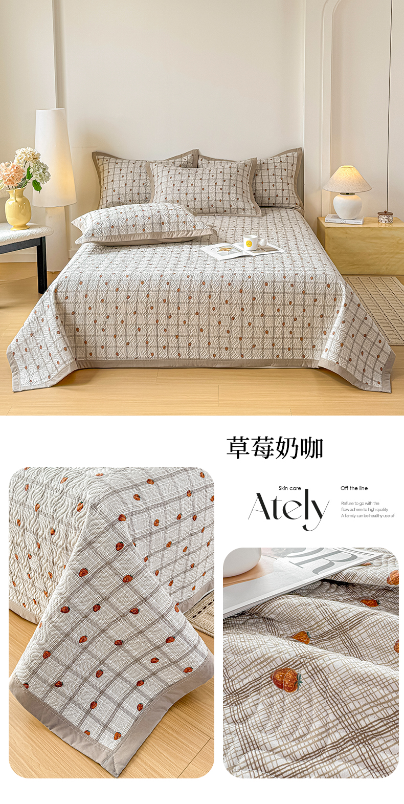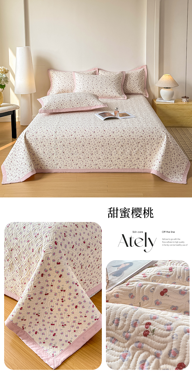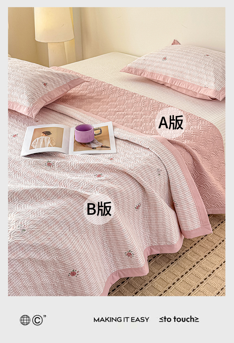(总)优贝家纺 2026春夏新款水洗棉小清新印花夹棉多功能床盖三件套
