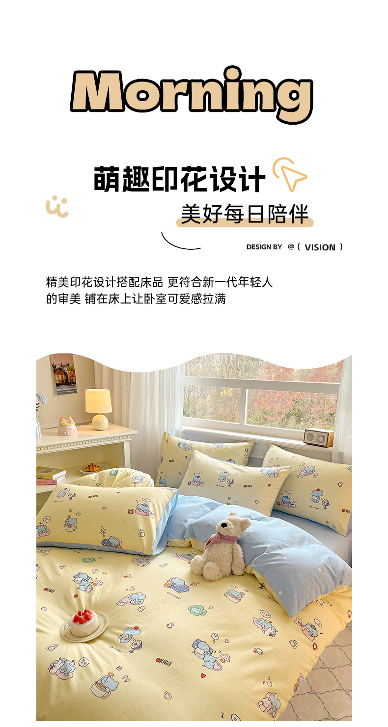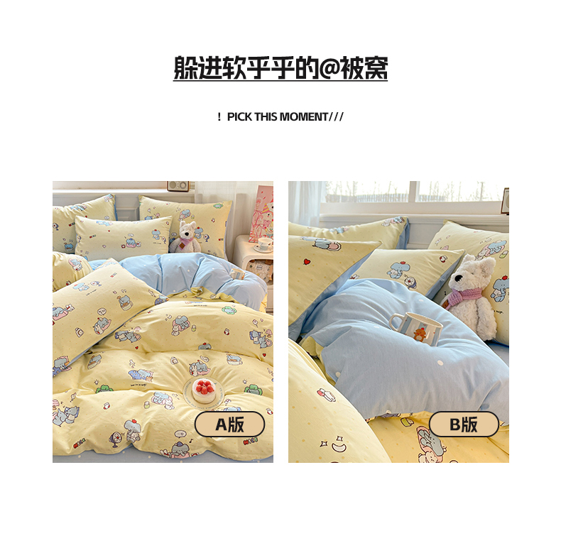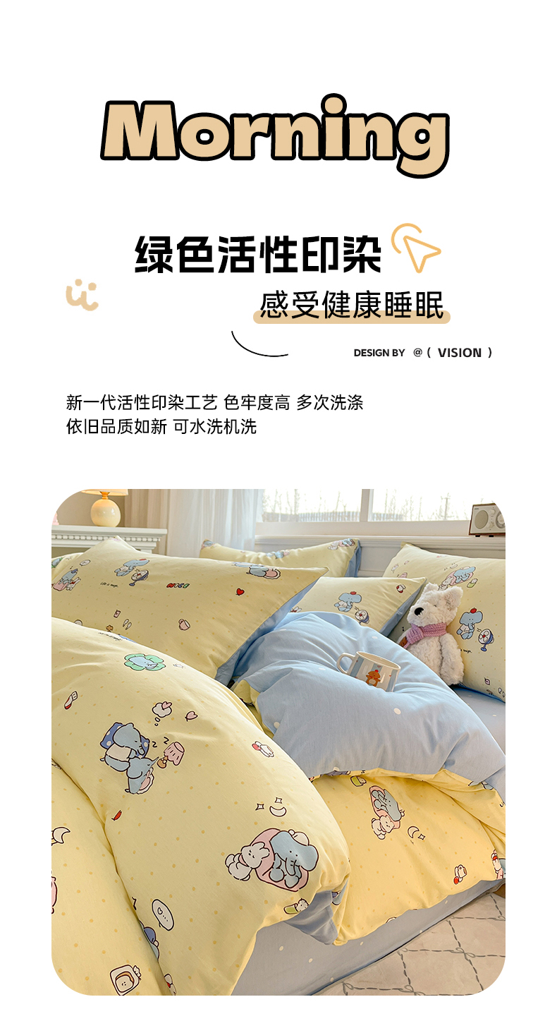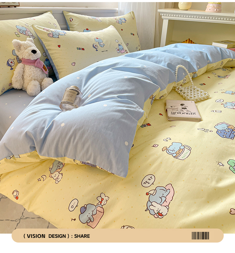 当前位置: 91家纺网 > 商品网购 > 床品套件 > 四件套 > 全棉普通四件套 > 博雅 2026新款全棉纯棉小卡通印花四件套 晚安小象