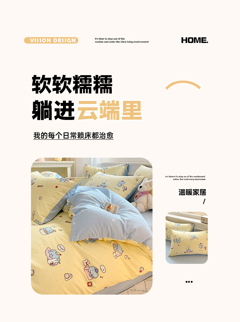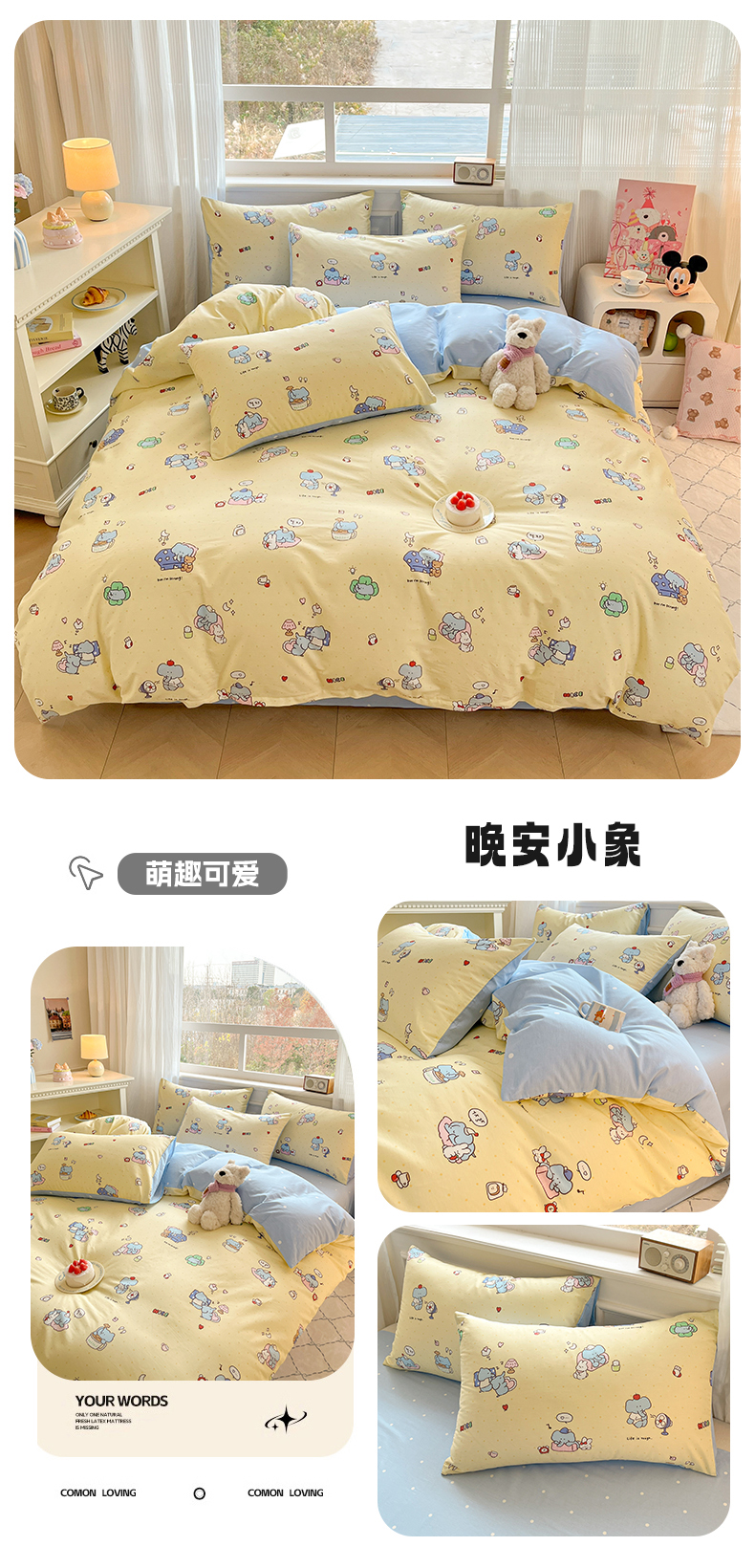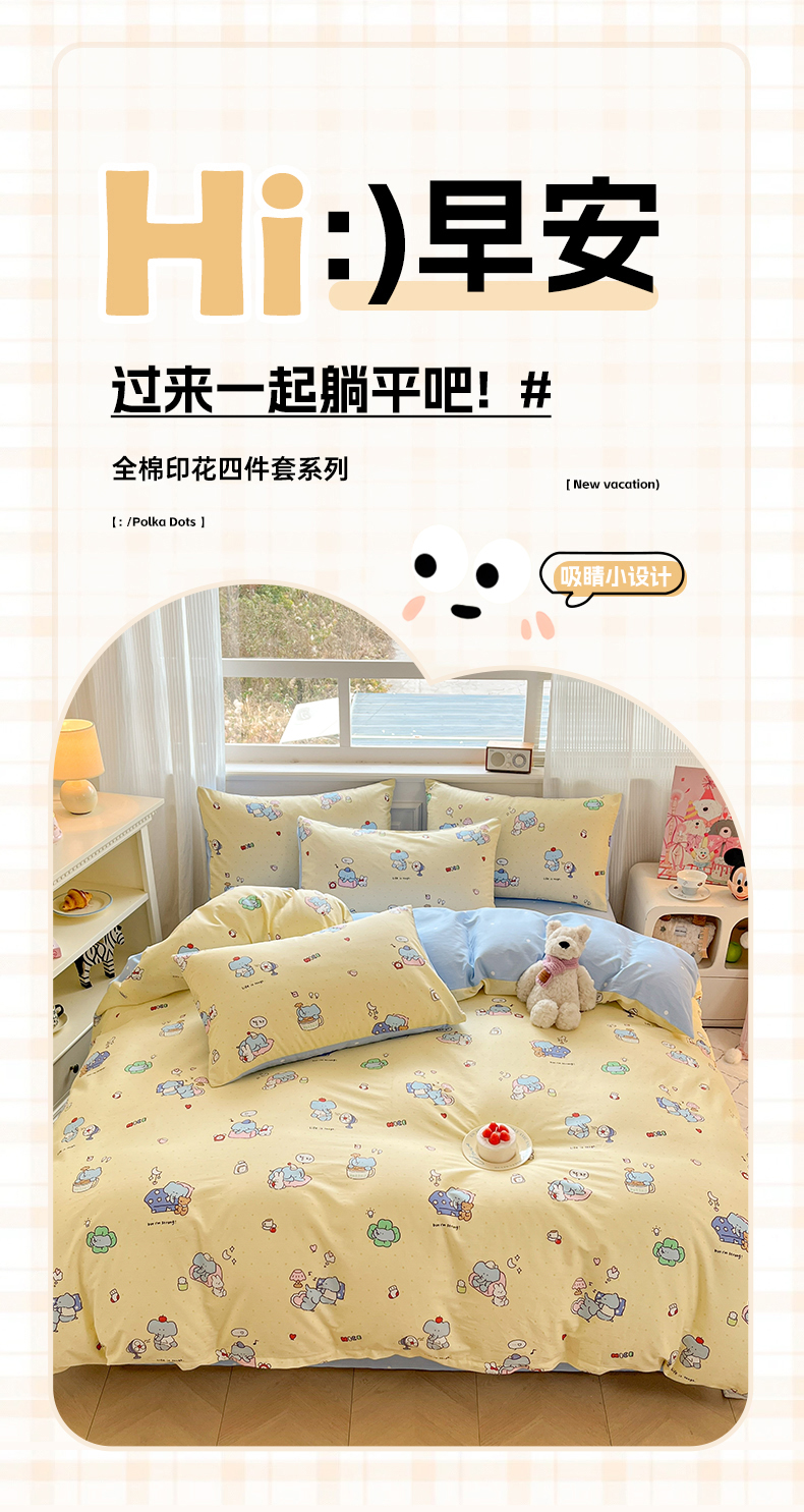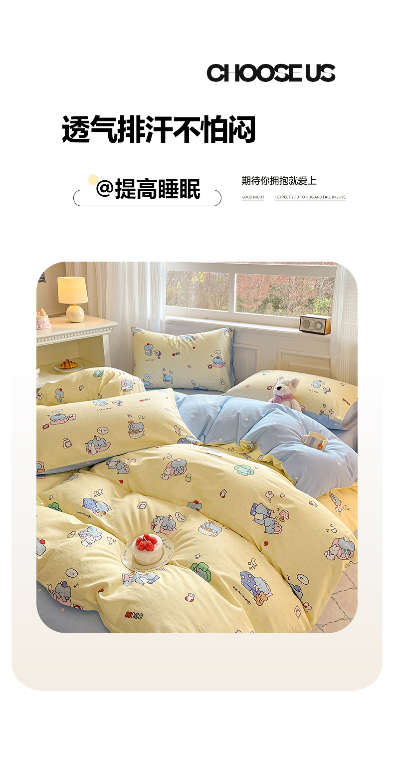 当前位置: 91家纺网 > 商品网购 > 床品套件 > 四件套 > 全棉普通四件套 > 博雅 2026新款全棉纯棉小卡通印花四件套 晚安小象