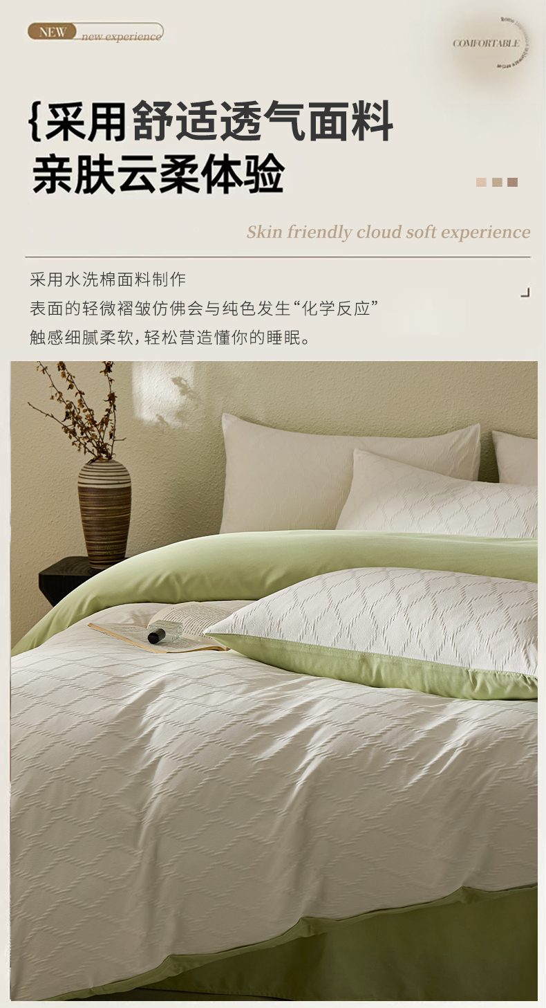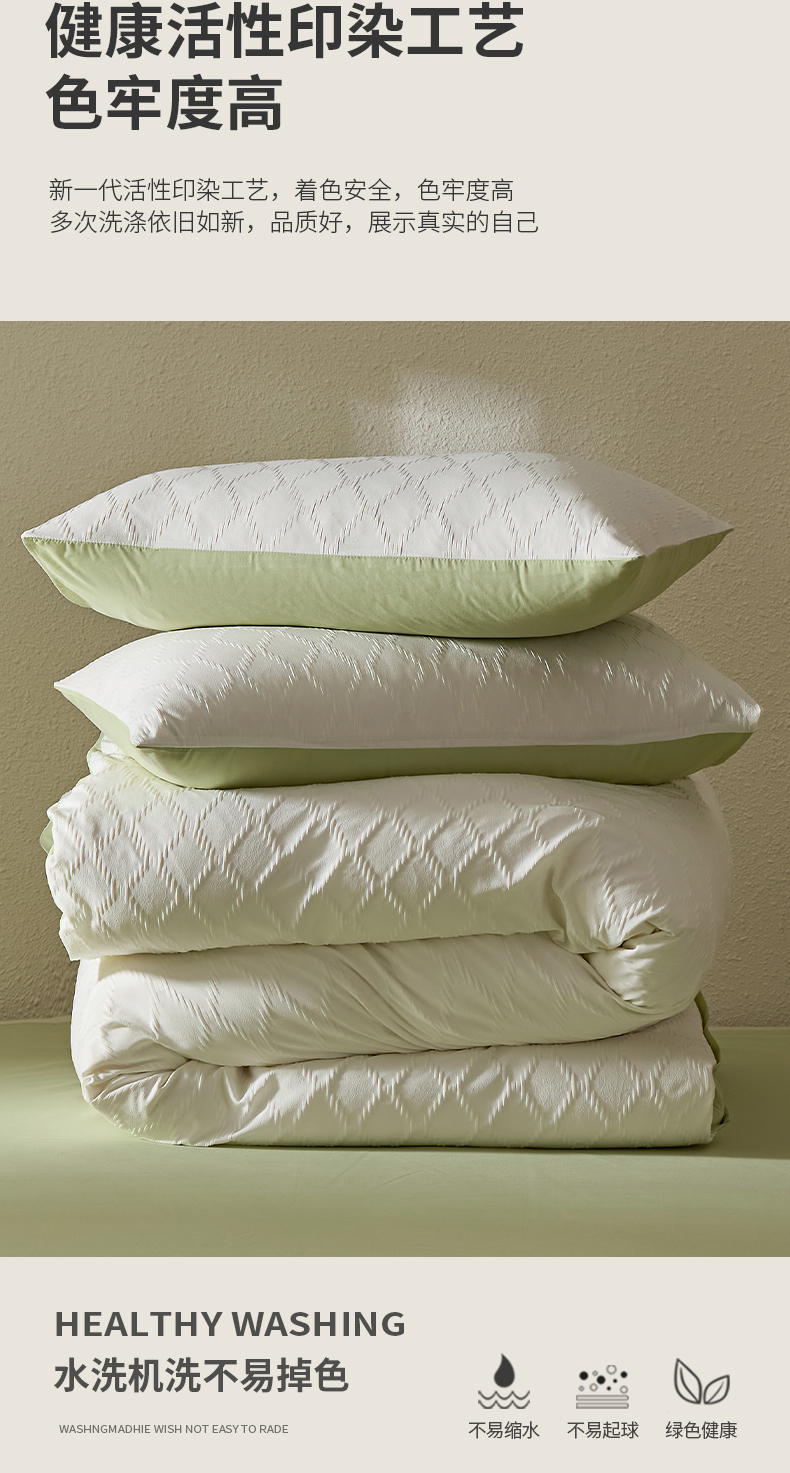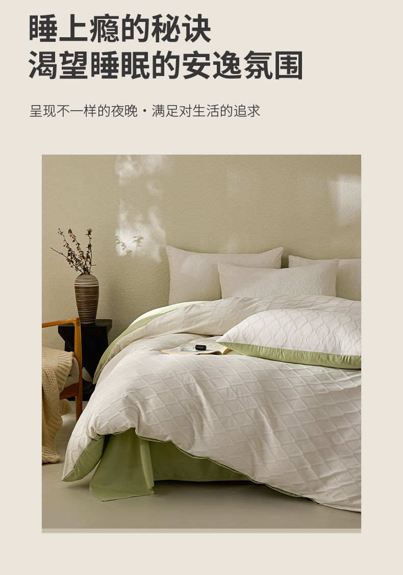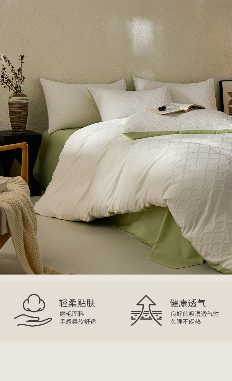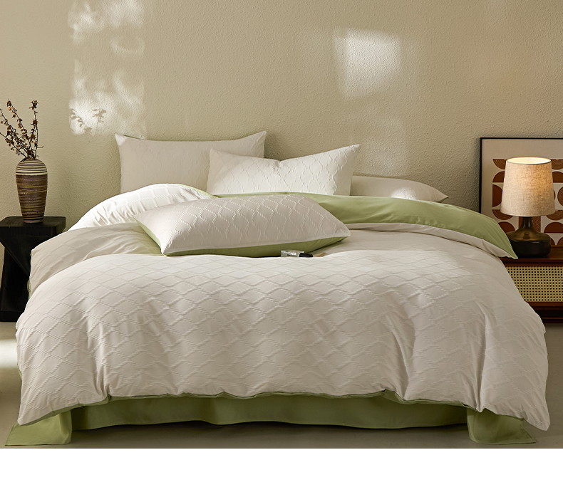 当前位置: 91家纺网 > 商品网购 > 床品套件 > 四件套 > 其它四件套 > 悦织湾家纺 2026新款超柔菱形格提花四件套轻奢纯色时尚学生宿舍床单床笠款三四件套单被套 菱形格-奶白+果绿