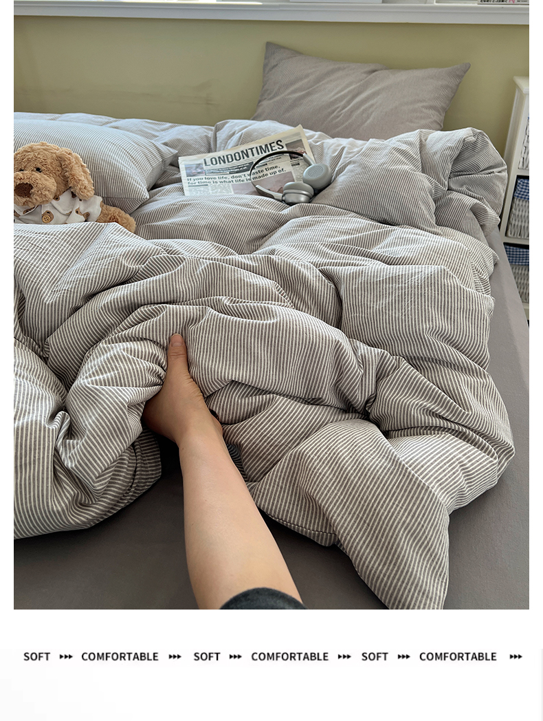 当前位置: 91家纺网 > 商品网购 > 床品套件 > 四件套 > 水洗棉四件套 > 悦织湾家纺 2026新款软糯加厚水洗棉条格无印宜家风混搭三件套四件套学生宿舍床上用品 组合图 仅供参考