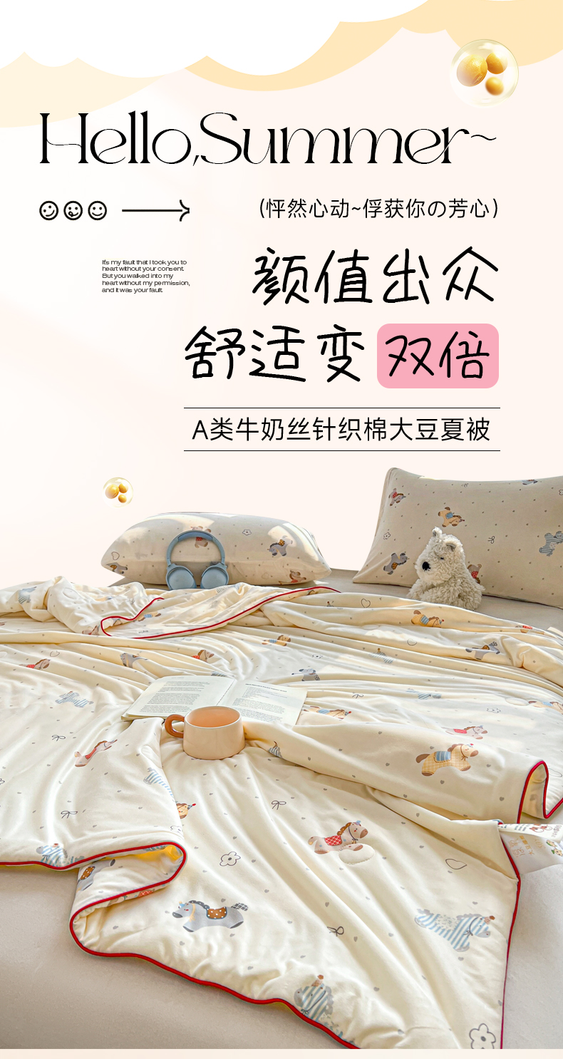 (总)优被业 2025新款A类全棉小清新大豆夏被,KT猫,宁夏,小夜猫,小迷糊,快乐小狗,泡泡糖,草莓园,集美