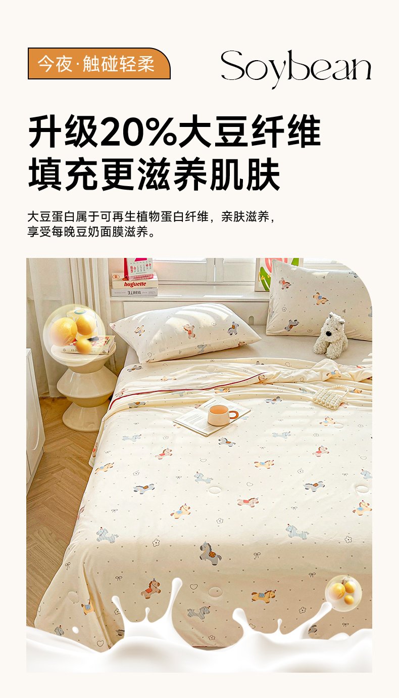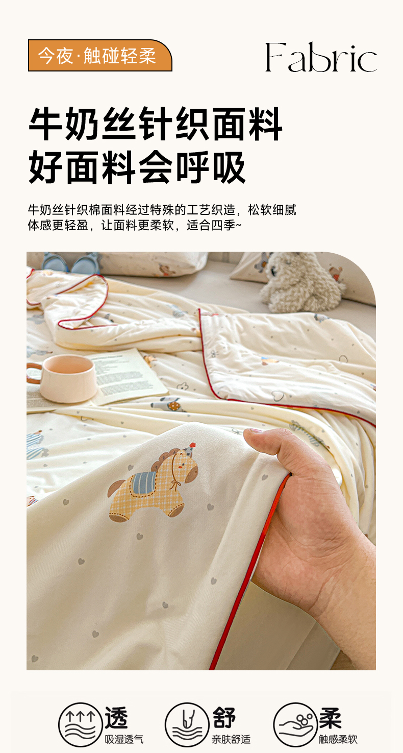 商品名称:优被业 2026新款A类牛奶丝针织棉软糯凉感大豆夏被空调被夏凉被(20%大豆国标包检测) 千禧马