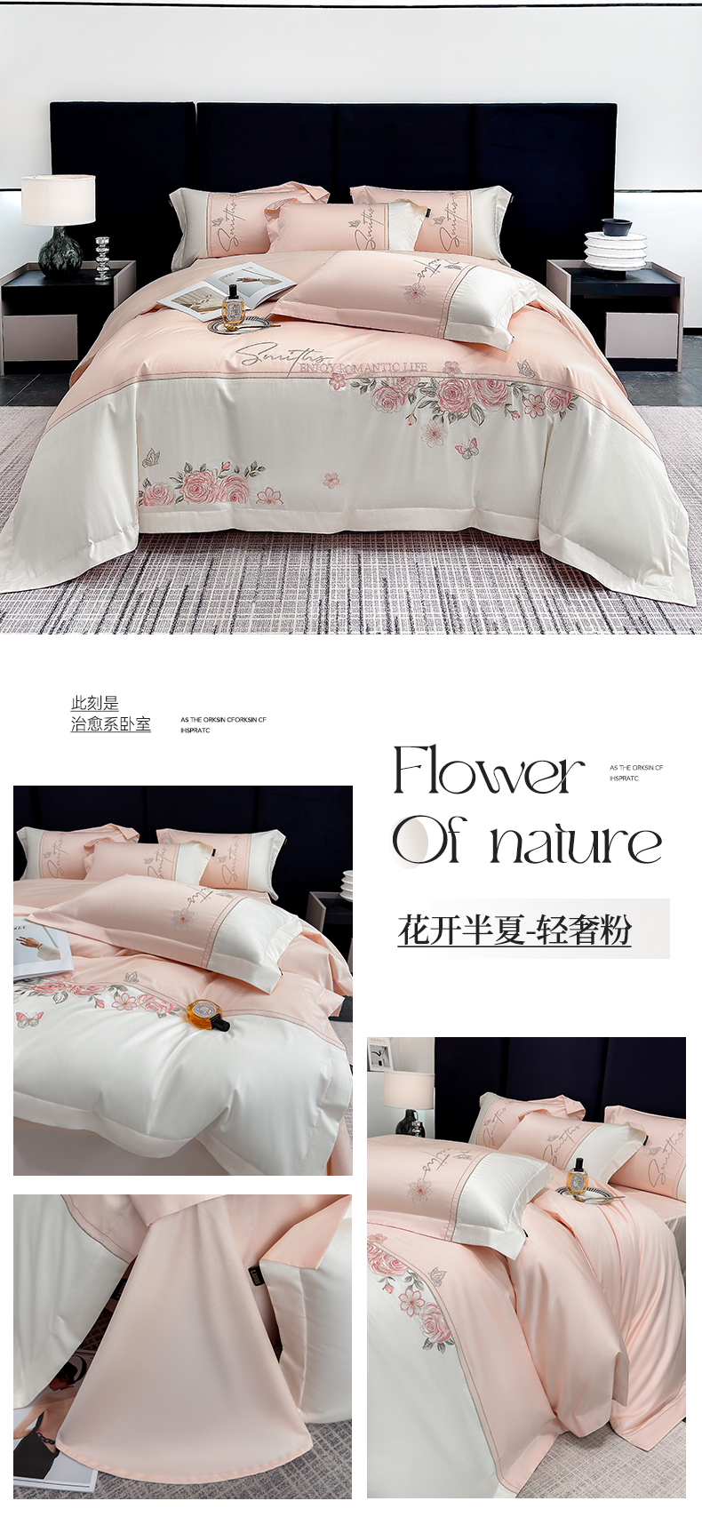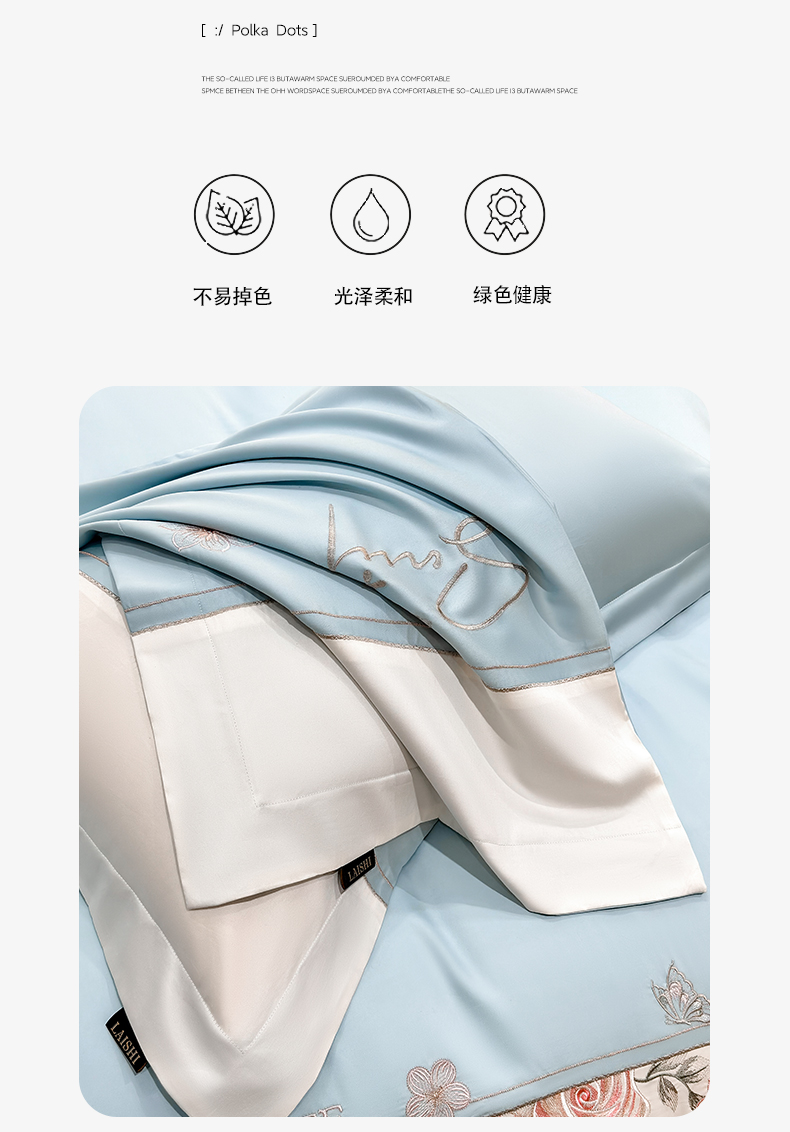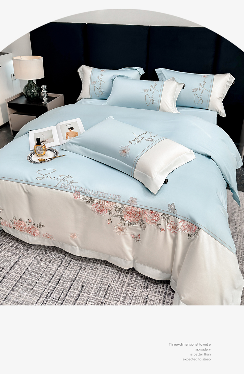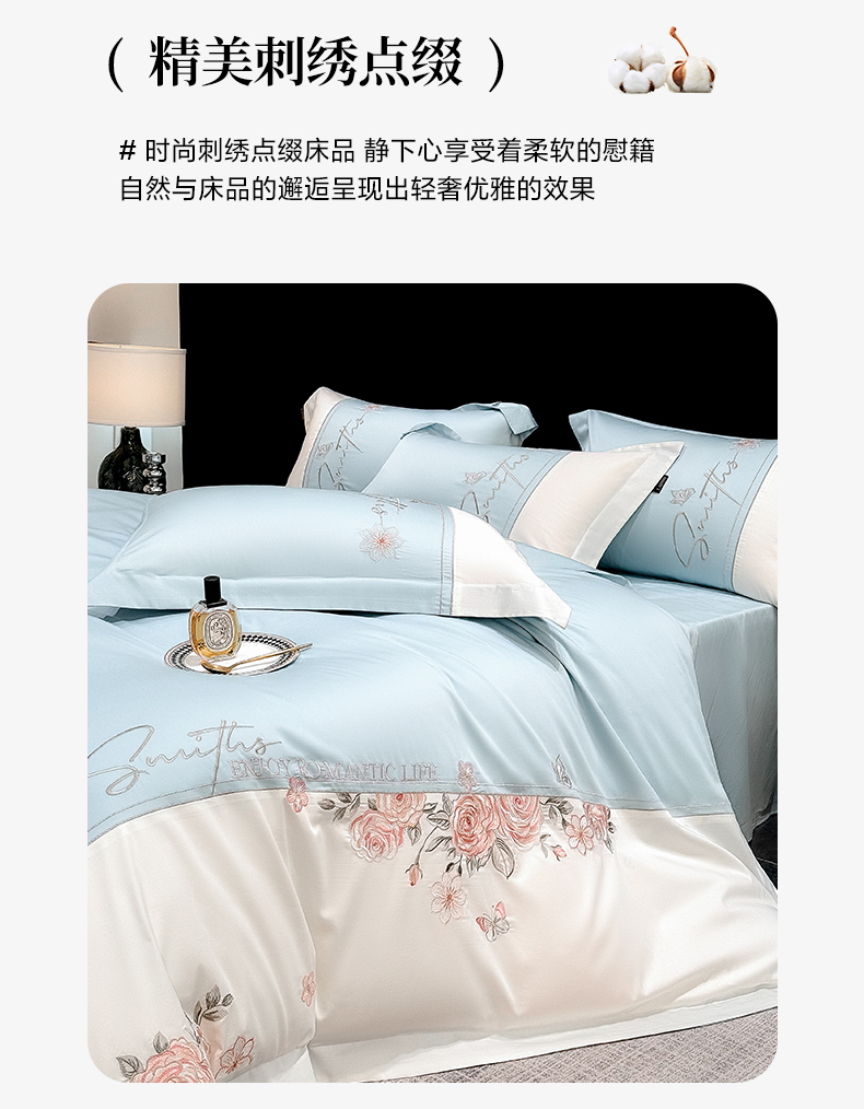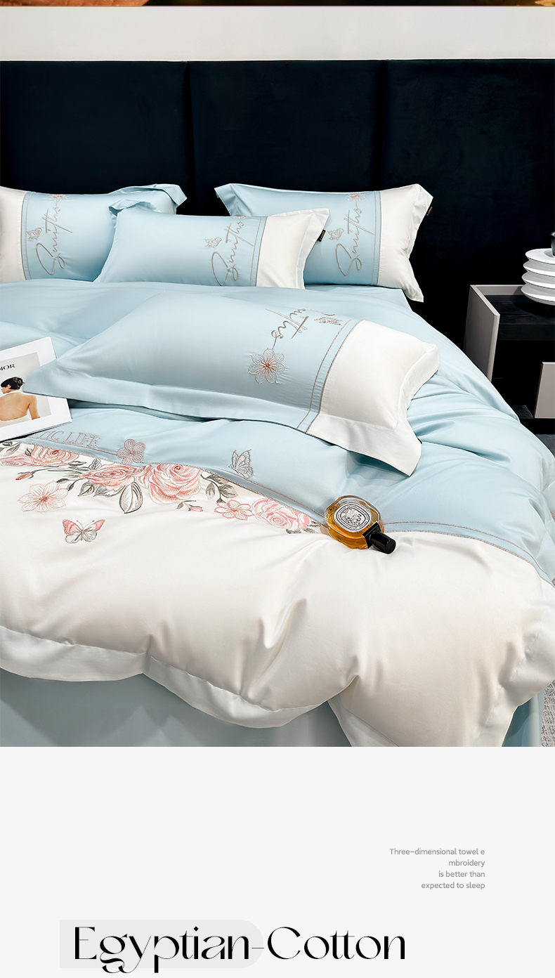 当前位置: 91家纺网 > 商品网购 > 床品套件 > 四件套 > 长绒棉四件套 > 莱势 2026新款100支全棉纯棉50x50s埃及贡缎长绒棉刺绣绣花四件套高端礼盒-花开半夏系列 花开半夏-天空蓝