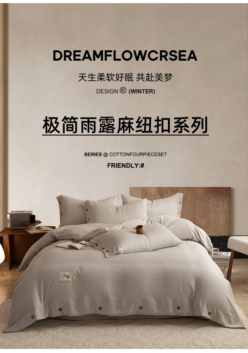 当前位置: 91家纺网 > 商品网购 > 床品套件 > 四件套 > 其它四件套 > 绒世界 2026新款雨露麻纽扣款床单床笠四件套 雨露麻(樱花粉)