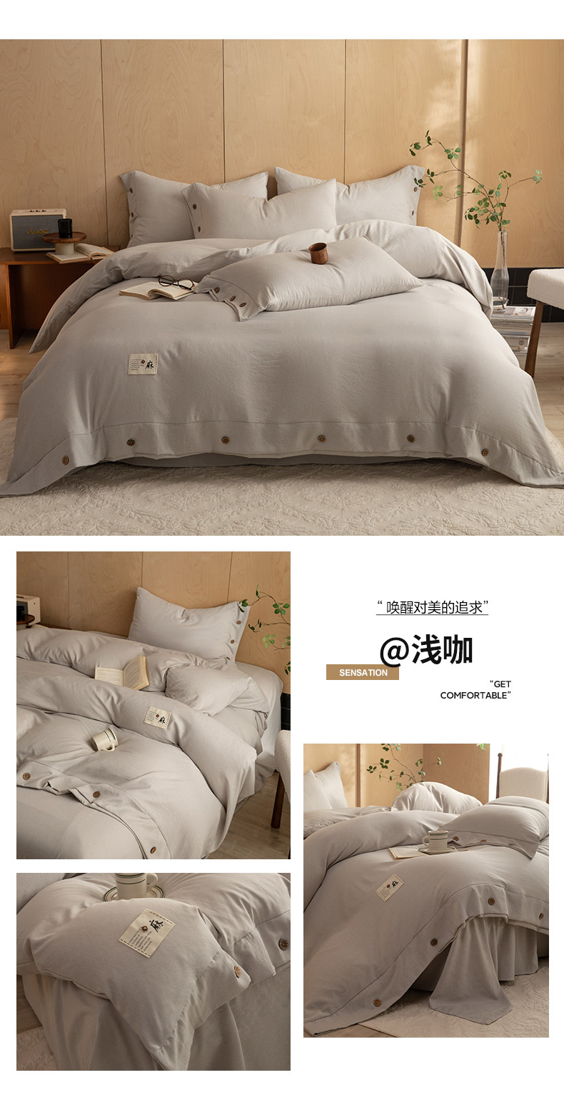 当前位置: 91家纺网 > 商品网购 > 床品套件 > 四件套 > 其它四件套 > 丝印良品 2026新款雨露麻纽扣款床单床笠四件套 雨露麻(紫粉)