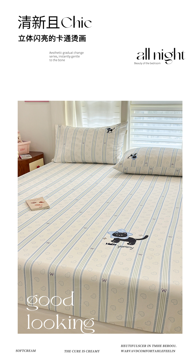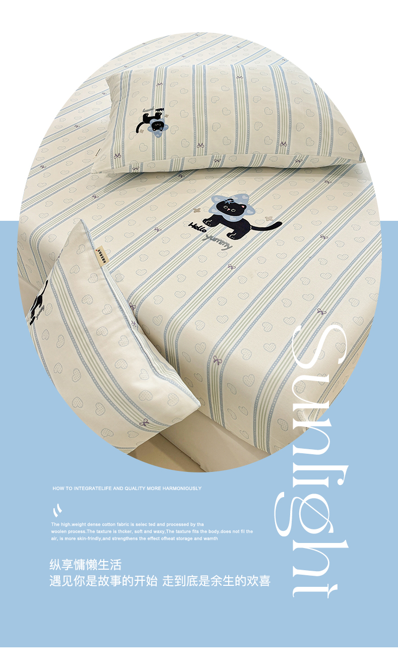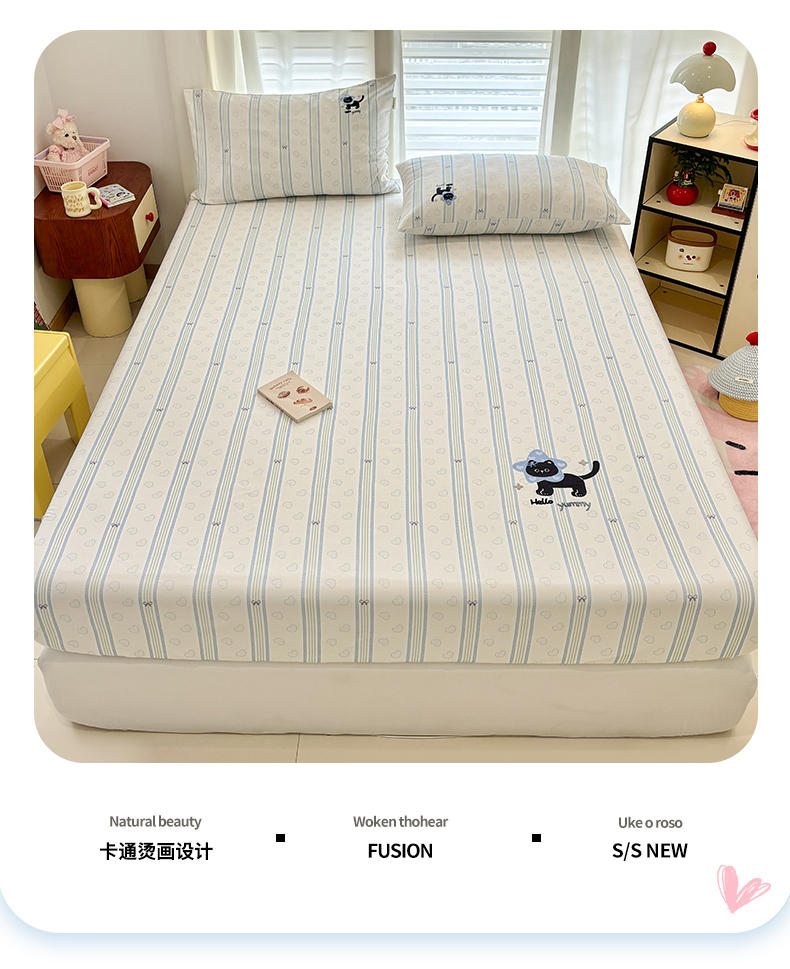 商品名称:卧趣家纺 2026新款全棉老粗布凉席席子床笠单件床笠单品单床笠绒布贴系列 萌星