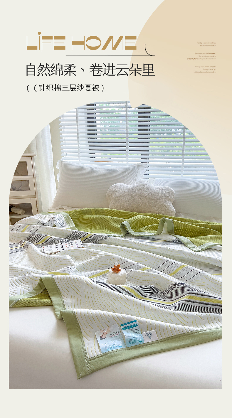 商品名称:馨乐家纺 2026新款三层纱针织夏凉被夏被被子被芯盖毯 春竹