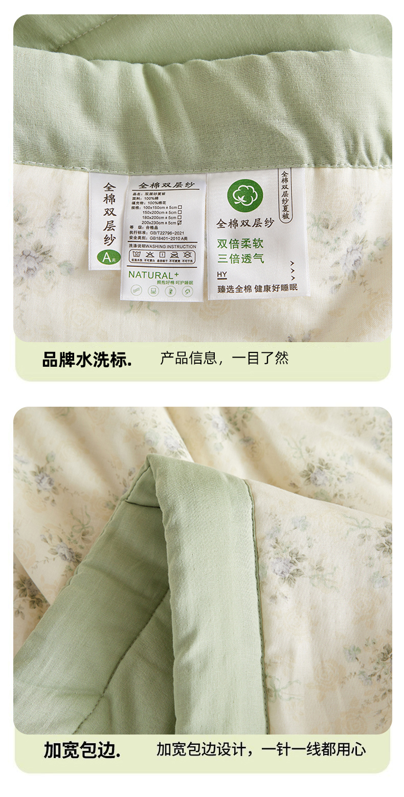 海洋家纺 2026新款全棉双层纱夏被被子被芯 柒月绿