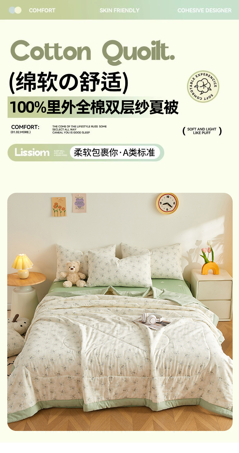 (总)海洋家纺 2026新款全棉双层纱夏被被子被芯 风格一,春晓 绿,草莓熊,芙蓉 粉,福宝熊猫,好丽友,花千朵,罗曼 紫,米兰,诺言,柒月绿,秋日集 粉,郁见,组合图