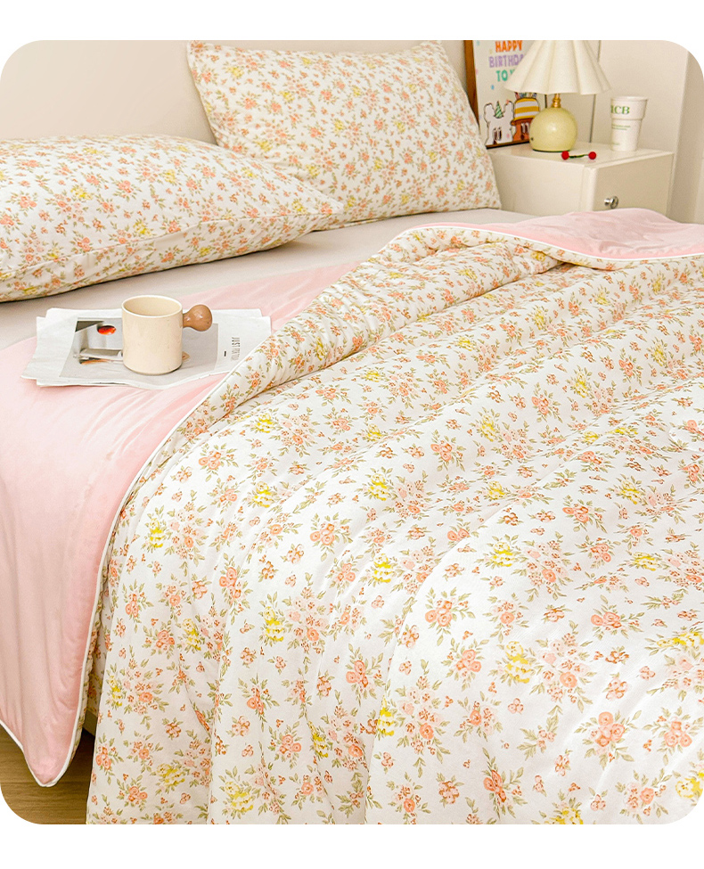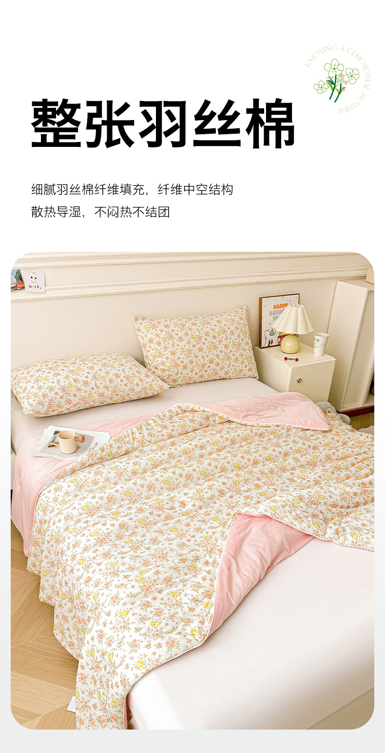 悦织语 2026新款凉感丝(含氨纶)双面凉感冰丝夏凉被空调被 花蔓