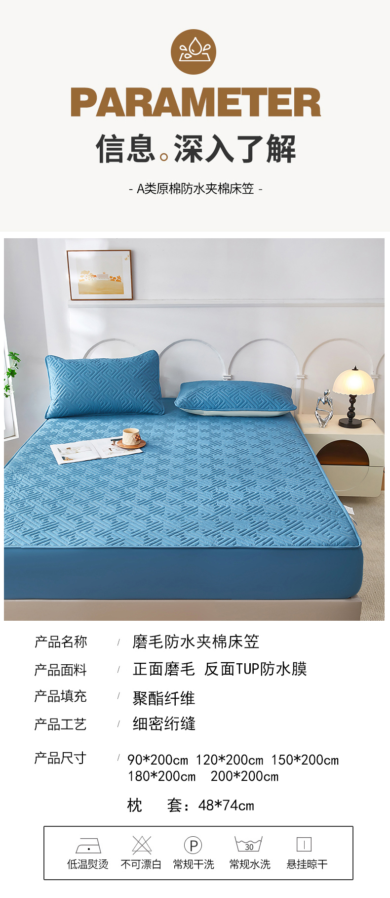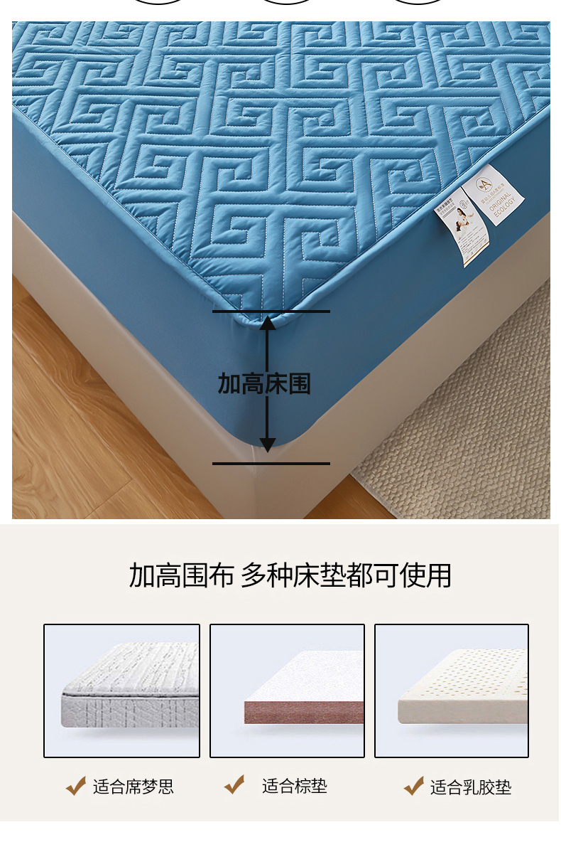 当前位置: 91家纺网 > 商品网购 > 床上用品 > 床笠 > 三盛源 2026新款A类防水夹棉床笠加厚席梦思床垫保护套床笠罩防滑-简奢系列(支持小批量定制尺寸) 简奢系列-天空蓝