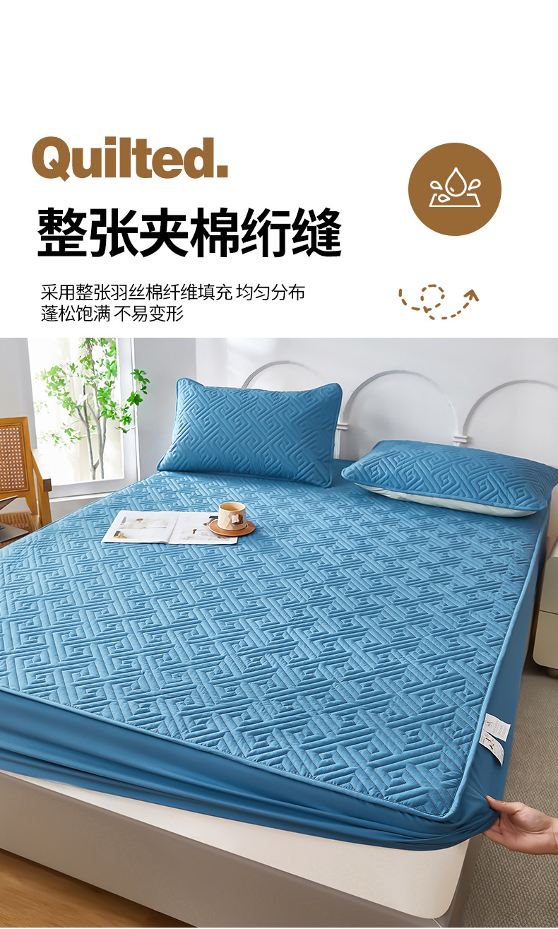 三盛源 2026新款A类防水夹棉床笠加厚席梦思床垫保护套床笠罩防滑-简奢系列(支持小批量定制尺寸) 简奢系列-天空蓝