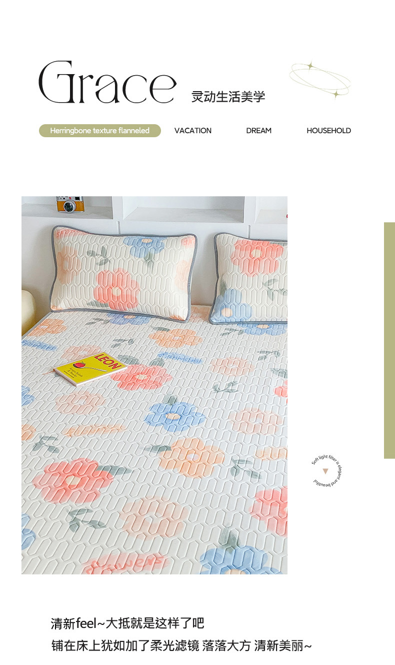 商品名称:七里香 2026春夏新款凉感丝数码印花乳胶凉席 印花-色块花