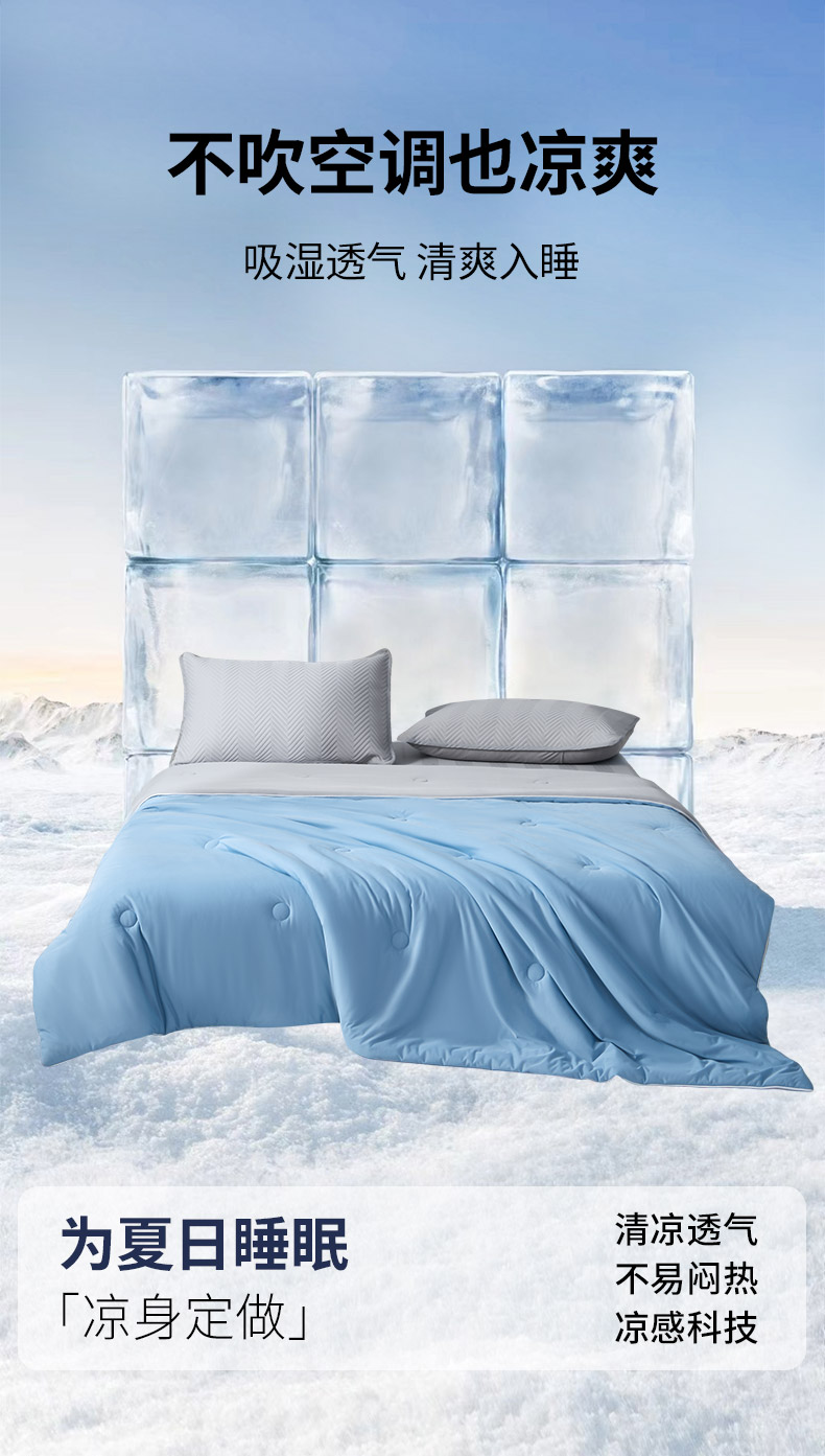 商品名称:绒城 2026新款冰爽系列-凉感丝夏被四件套 海蓝