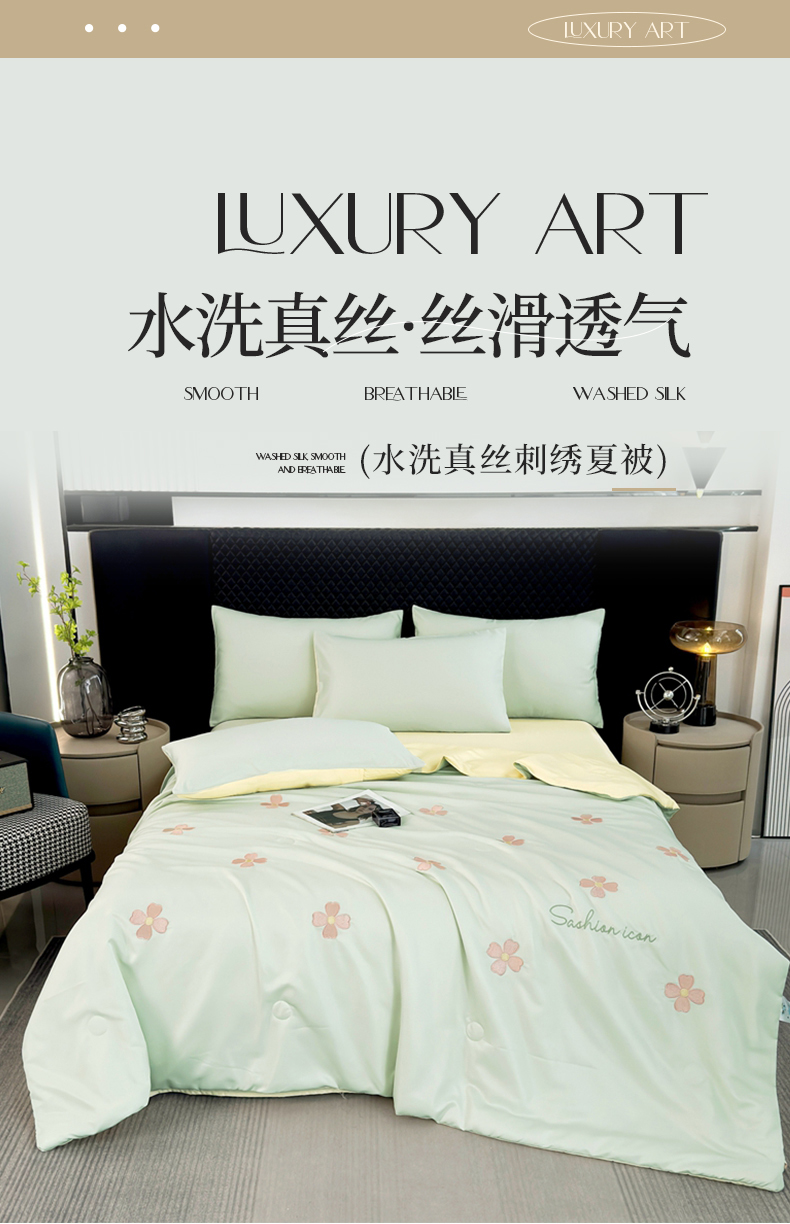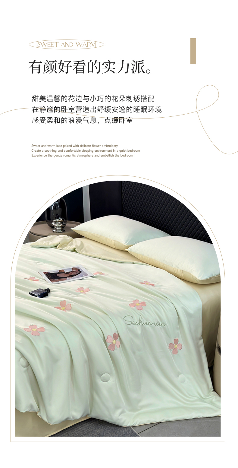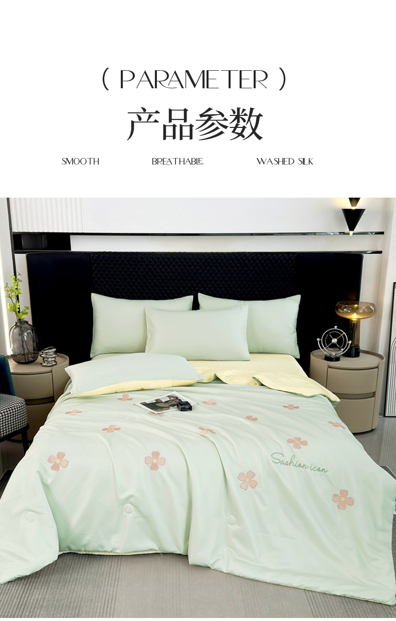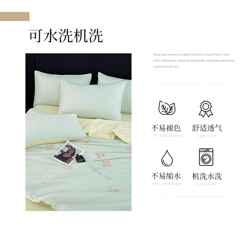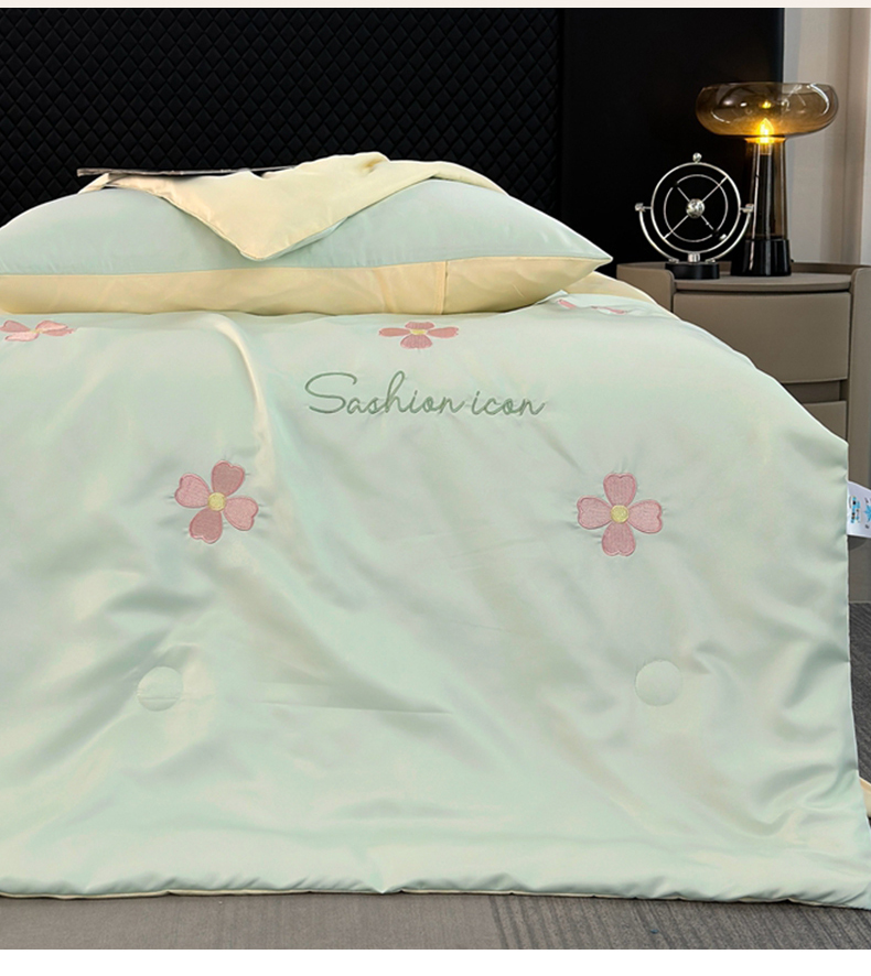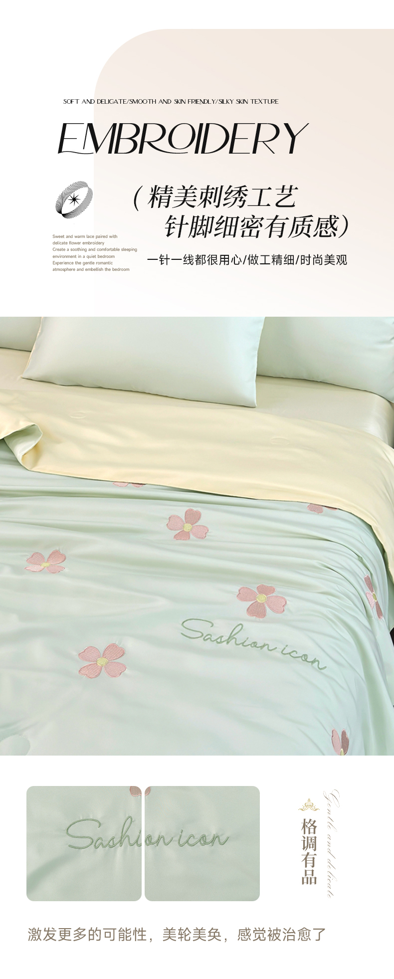 • 91家纺网 家纺一手货源 找家纺 益多眠 2026新款水洗真丝刺绣夏被夏凉被空调被四件套 幸运花瓣-水果奶黄