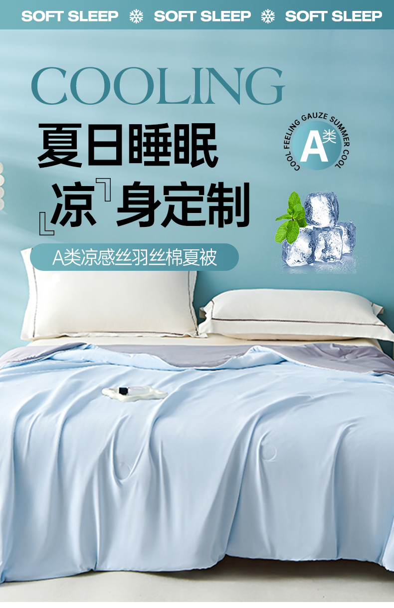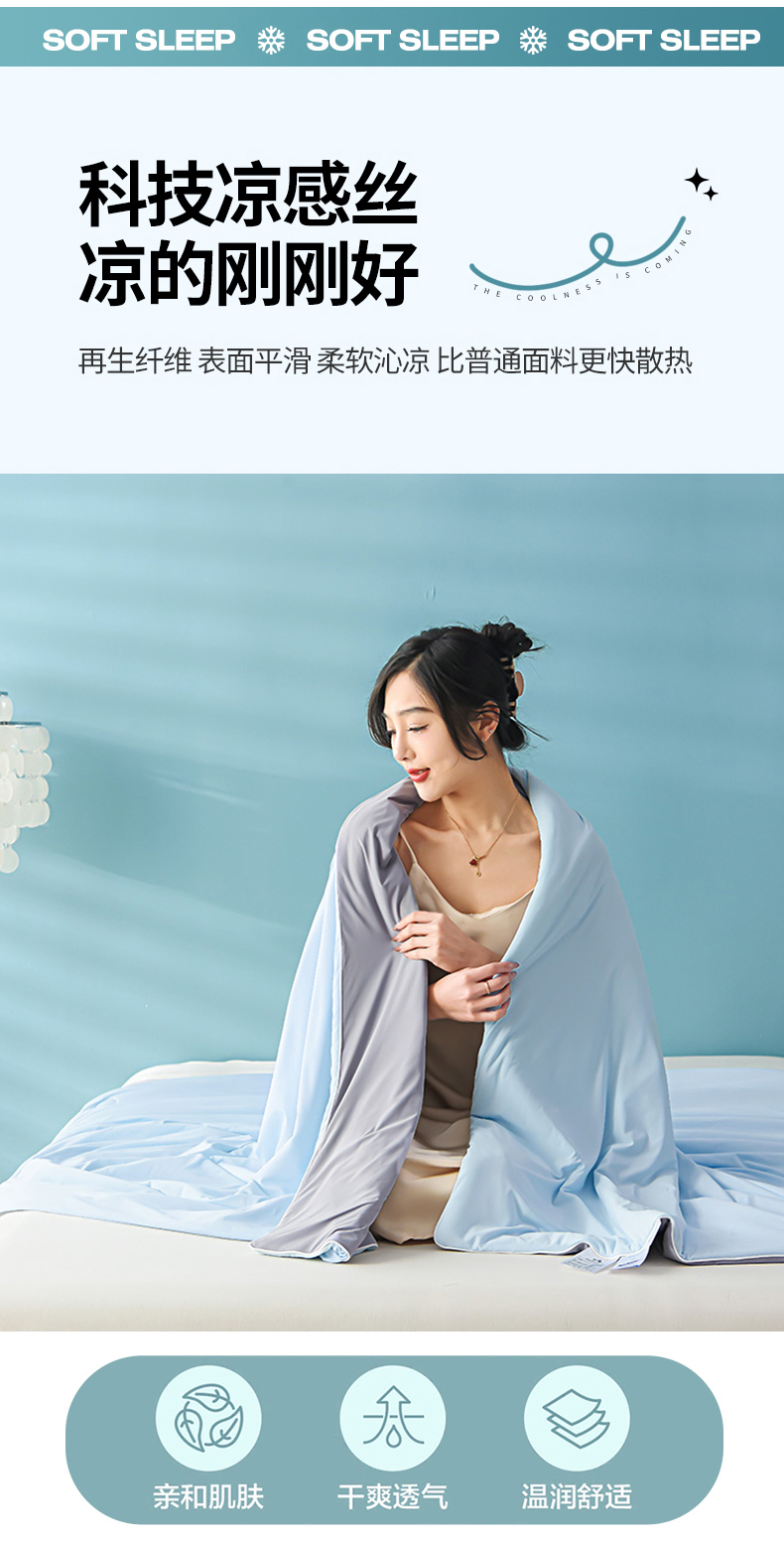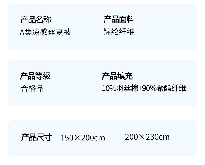 商品名称:益多眠 2026新款A类凉感丝羽丝棉夏被夏凉被空调被 天蓝灰